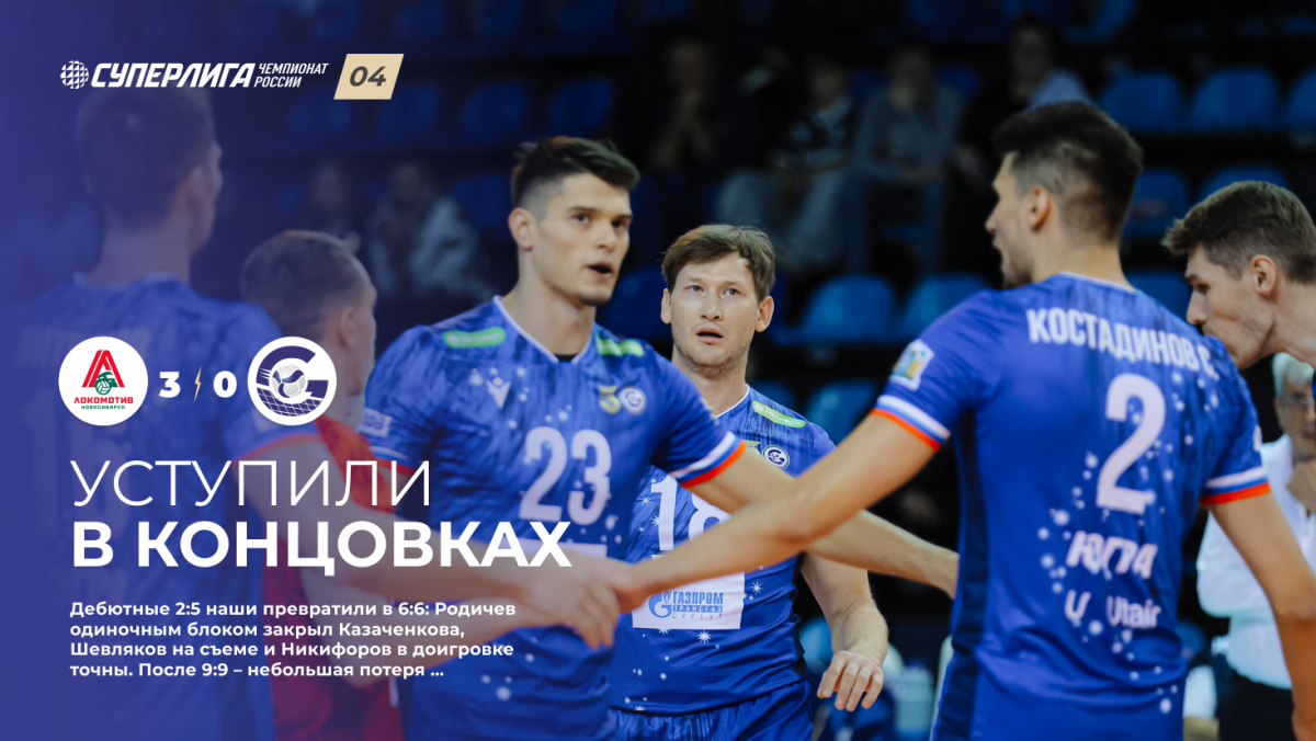 Все решили три концовки, в которых класс и немного удача были на стороне «Локомотива». Наверное, и удача в таких ситуациях – показатель чуть более высокого класса команды, который проявляется в нужный момент. Нам же упрекнуть себя не в чем, сражались на равных. Где начинало сбоить – находили варианты для усиления, меняли тактику, цеплялись, кусались, бились. По большому счету, проиграли позицию второго доигровщика. Александр Костадинов был в родных стенах почти безупречен: 45% позитива в приеме, 53% в атаке, два блока. Но Родичев при 62% в приеме в атаке показал только 25%, Бобров из пяти попыток забил всего лишь раз. Дэру – 50% в атаке, хоть прием и прихрамывал, Курбанов – 55% прием, 62% атака, блок и четыре эйса.