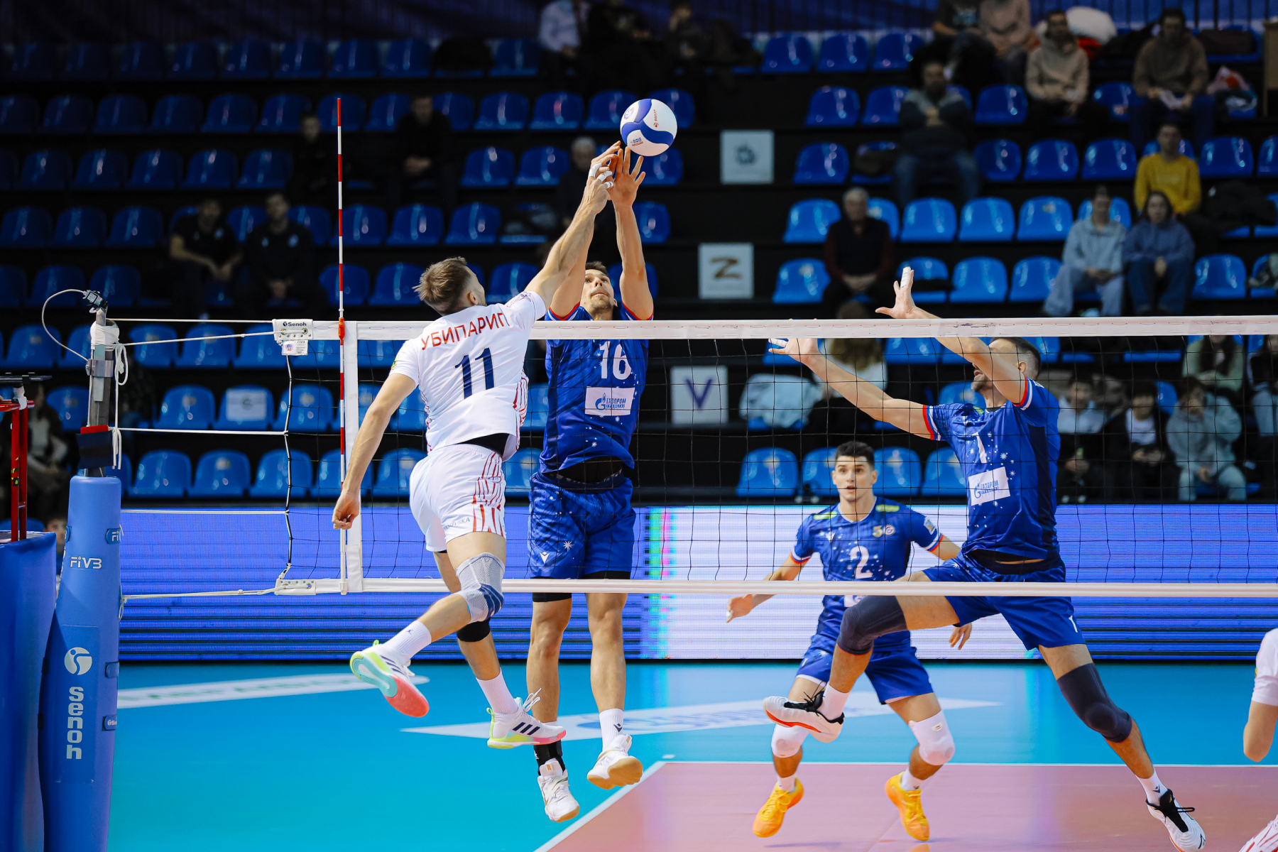Тайм-аут встряхнул «Газпром-Югру»: Литвинов снялся, а Слави отгрузил два блока Юцевичу, 11:8. И снова пошел брак: Моисеев не справляется с подачей Рукавишникова, Хлякин хорош в доигровке, Литвинов на одном блоке мажет мимо линии, сверхзатяжной розыгрыш заканчивается касанием сетки с нашей стороны, 15:15. Еще один длинный розыгрыш – отскок от блока возвращается в Литвинова, гости впервые выходят вперед, 15:16.