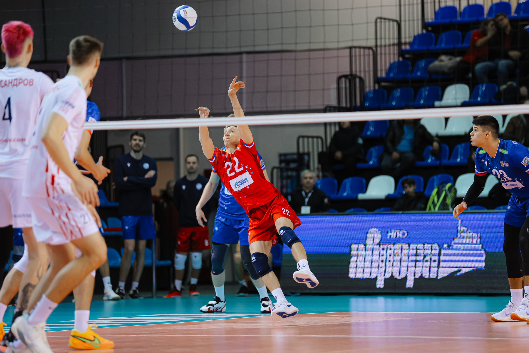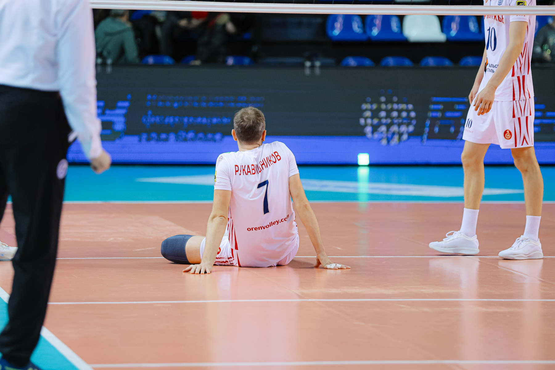 За здравие Павел начал и четвертый сет, сразу оформив эйс классическим отскоком мяча от троса вертикально вниз. У «Оренбуржья» в старте вышли Купряшкин, Кудряшов, Некипелов – половина стартового состава заменена. Купряшкин ищет пас, а счет уже 3:0 после атаки Хлякина в аут. На планерах Андреева новый рывок: 7:1! У гостей не хватает сантиметров взаимодействия связующего с атакой, и это решает. Вольвич берет тайм-аут, возвращает Убипарипа, меняет Хлякина на Рахматуллина, но Рукавишников так и не появился до конца игры.