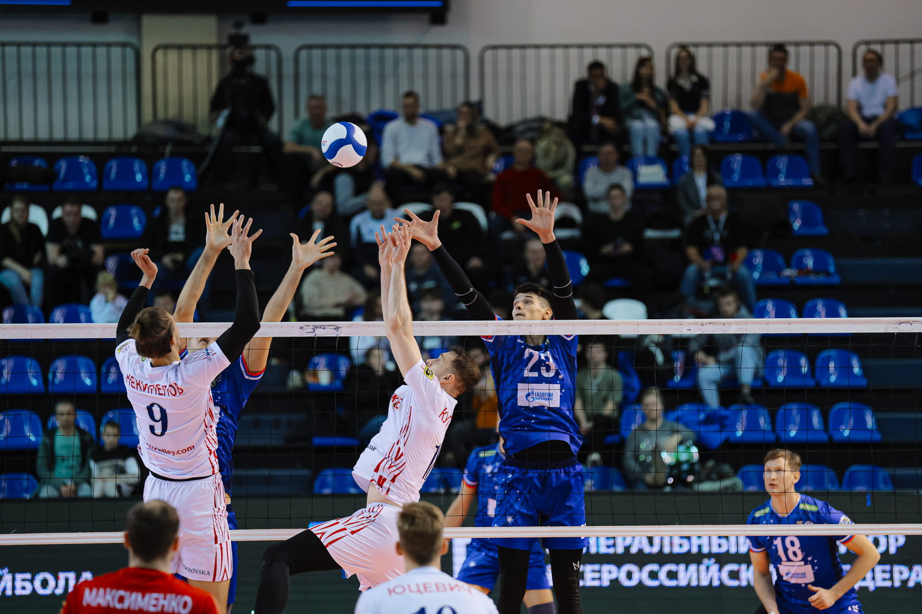 Третий сет команды провели в равной напряженной борьбе. В дебюте Александров уступил место Некипелову, Слави в очередной раз забил сам, Никифоров оформил эйс, 7:5. Моисеев и Максименко хороши в защите, особенно хорошо внизу обстоят дела у «Оренбуржья»: там раз за разом цепляют Александра Костадинова, вколачивавшего до этого в пол с хрустом, 10:12. Шевляков один в один закрывает Ткаченко, 12:12.