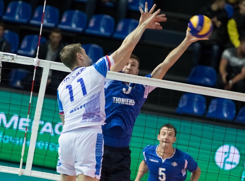 В първия сет двата отбора гледаха изкъсо играта на съперниците си и в началото резултатът беше равен 8:8. Но тогава нашата – единичен блок Данила Ворончихина, и при атаката на Казан - блок на Константин Бесогонов, и съперниците – атака в тъч и при резултат 11:8 Първият тайм-аут е взет от треньорския щаб на Зенит-УОР. Казанците успяха да се оттеглят от подаването на Иля Юденков едва при достигане на резултата 13:9, "Звездите" имат шест брейк точки. До средата на сета съперниците ни намалиха разликата до две попадения., но това е всичко. В крайна сметка предимството ни е вече седем точки 23:16 и „Звездата на Угра“ спокойно завършва мача с надежден блок, изпълнен от Александър Слободянюк.