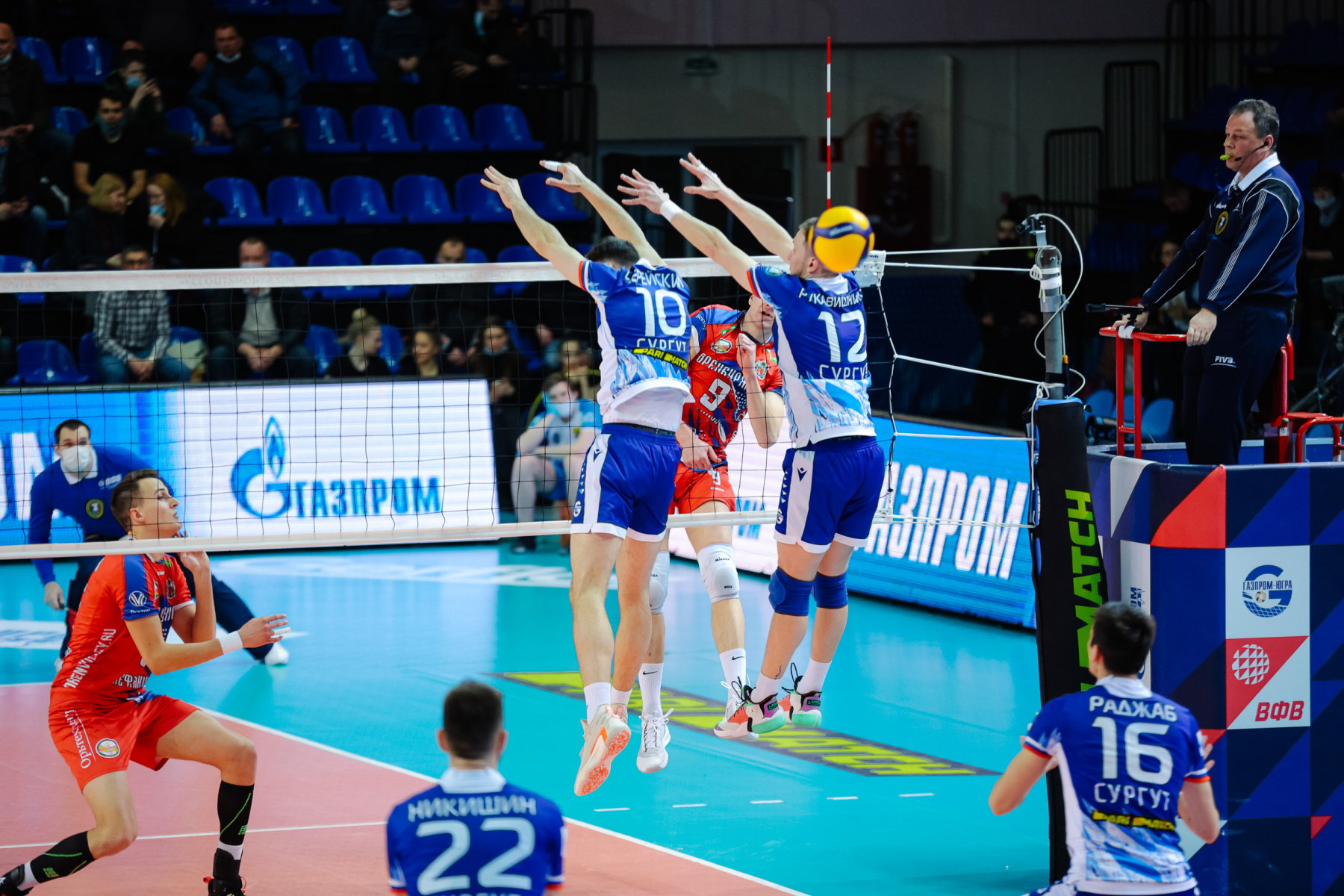 Втората изненада от игралния ден - поражение на собствениците от "Нефтяник". Началото на мача не предвещаваше добро за жителите на Сургут: на сервисите на Фиалковски "Газпром-Югра" влезе в сериозна преднина, 9:2. Малко притеснен от липсата на ефективни действия от Раджаб, но в средата на сета той избухна в асо, 15:10. „Нефтяник“ снимаше, правейки много грешки, на терена, Фрост не беше спокоен - 18:13 след блока на Довган върху него. Гостите спряха 18:16, но след тайм-аута на Сургутян, резултатът отново започна да се покачва в полза на домакините, и ас Довганя не остави шанс на съперника, 24:17 и 25:17 след завършването на Раджаб.