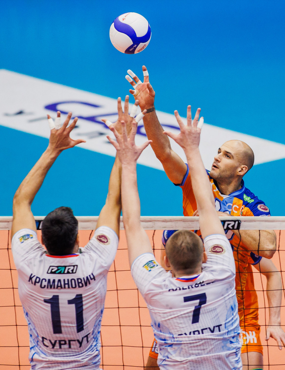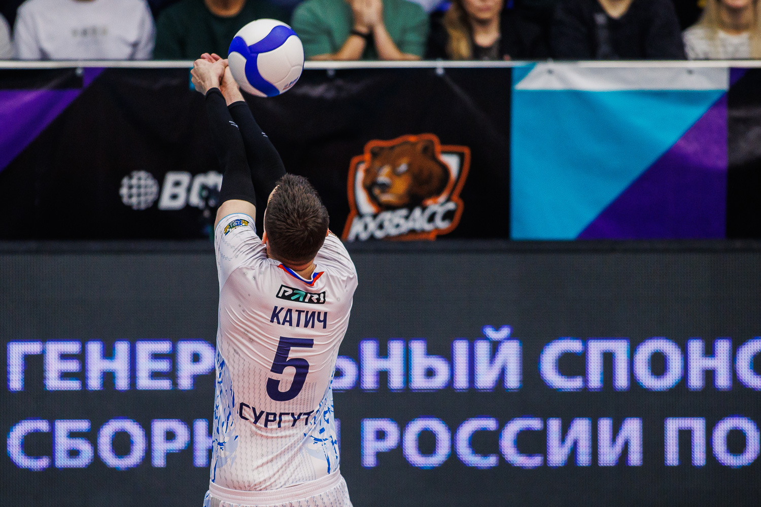 Но първо Маркин бие тройния блок, и тогава Кузбас отбива атаките на Шевляков и Коротаев, отговаряйки с тръба, изпълнена от Пакшин, 21:20. Алексеев от четвърта зона прави разликата, 23:21, и след таймаута на Kuzbass, Pakshin атакува кабела с тръба, давайки на отбора от Сургут три сетбола. Двама домакини отвръщат: Маркин удря, но Алексеев признава, че докосва блока, и след това надеждно се заклещи в ръцете на домакините от атаката на Катич, 24:23. Ожиганов упорито продължава да възражда Милан, без да гледа таблото: още два блока за капитана. За щастие Обмочаев чисти – и Алексеев завършва, 25:23.