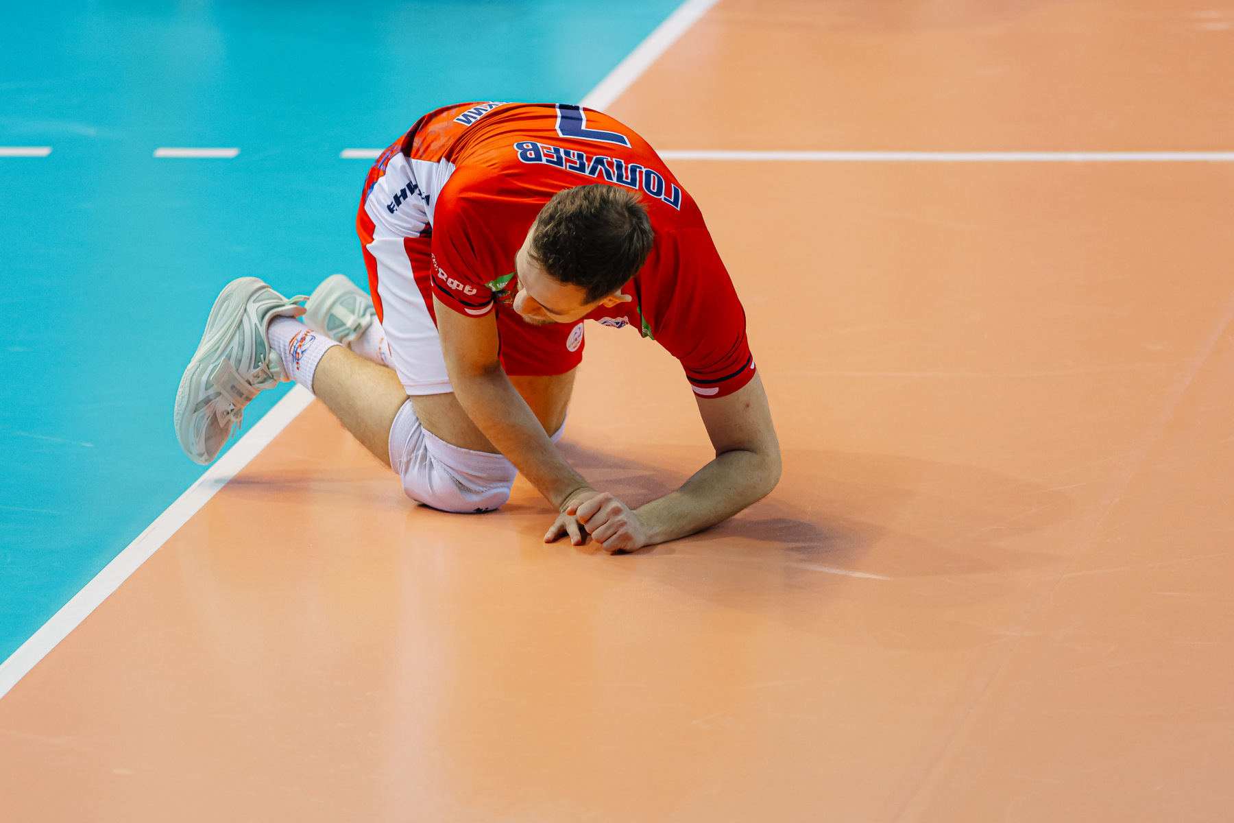 Качели вновь разворачиваются: Слави подает в аут, и хозяева не могут сняться ни через «четверку», ни через центр на плотных подачах Фетцова, 21:22. Затем Виталий немного не укладывает мяч в площадку, вместо Куклинского на переднюю линию выходит Александр Костадинов и скидкой зарабатывает брейк, 23:22. Родичев, как показалось всем в зале, добывает эйс – Галимов принимает мяч так, что тот улетает через стойку арбитра на сторону хозяев. Но его чудом возвращают обратно, перебрасывают, и… Костадинов утыкается в блок, 23:23. Такие моменты могут деморализовать кого угодно, добре, что Александр лишь разозлился и в следующем розыгрыше атаковал по блоку с такой мощью, что отскок без вариантов улетел в аут.