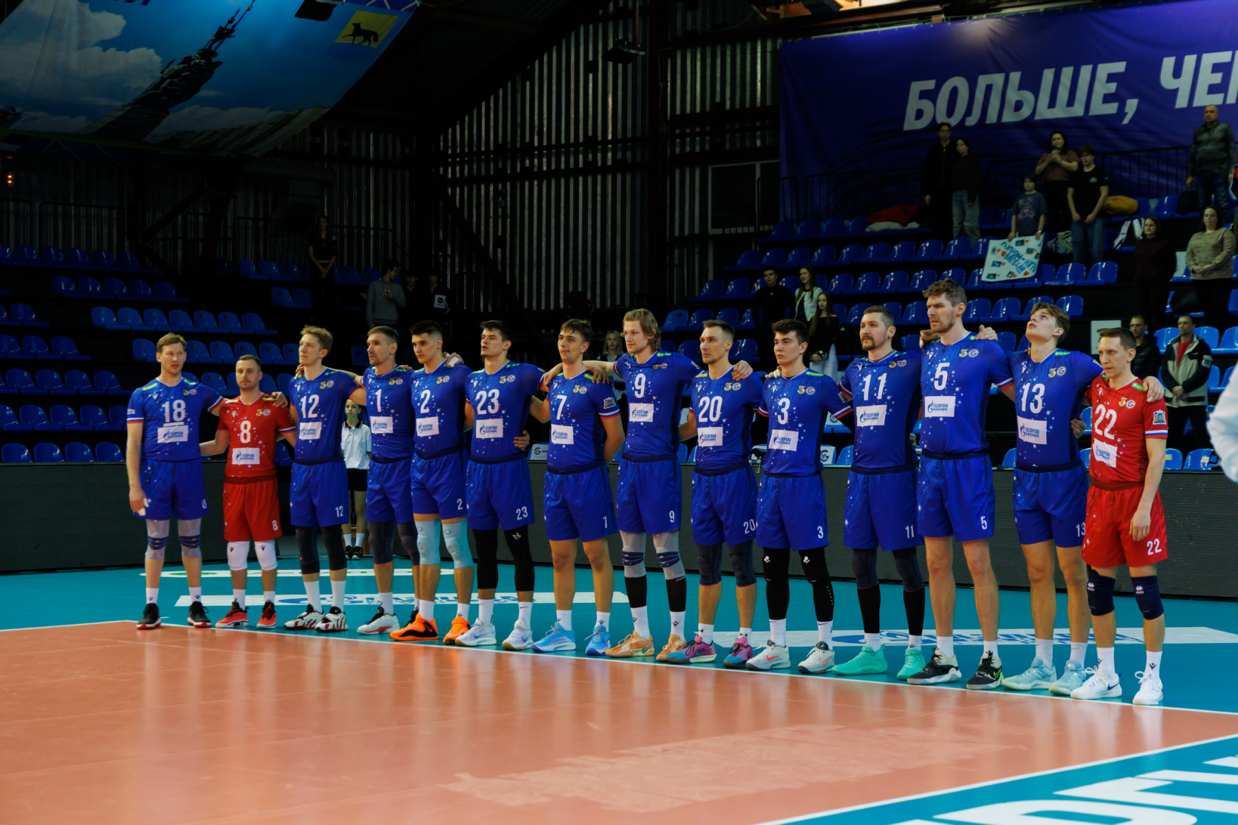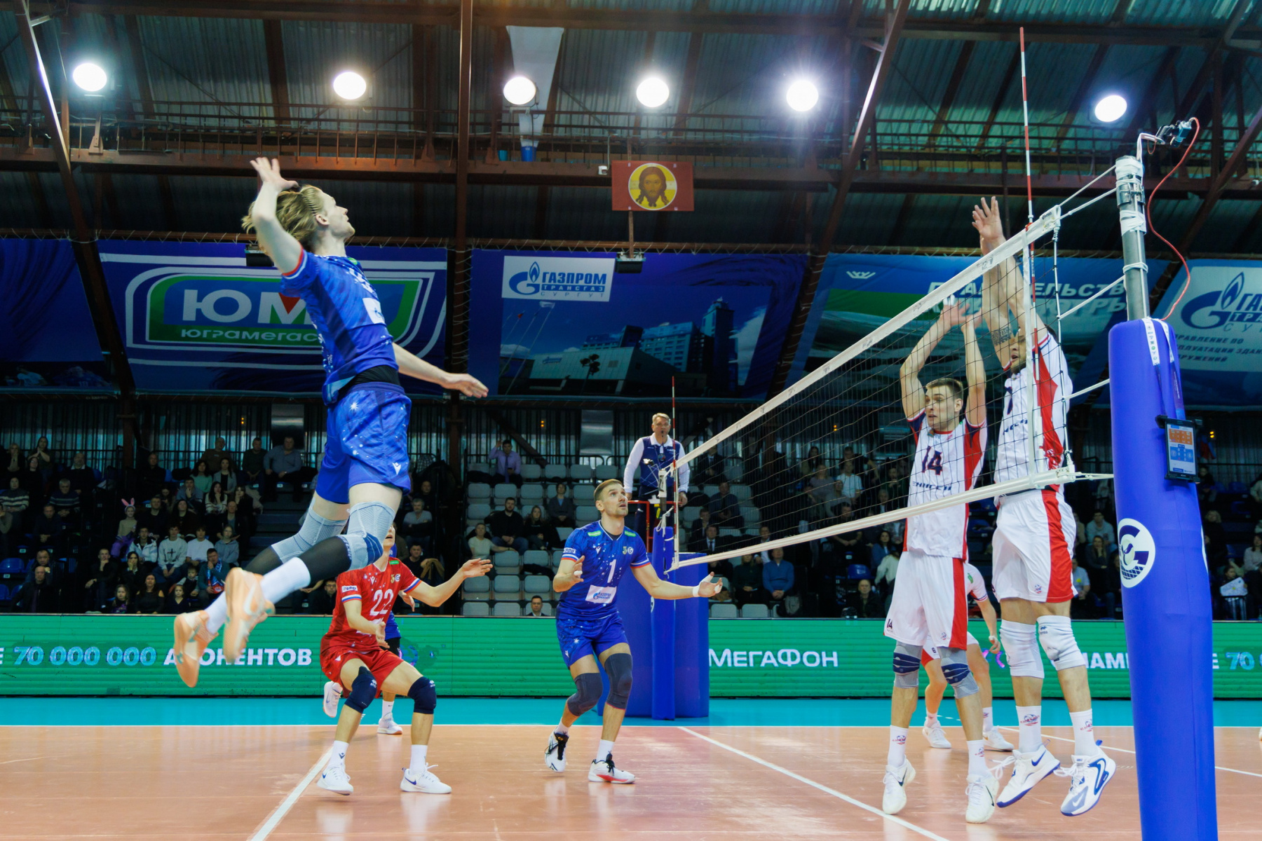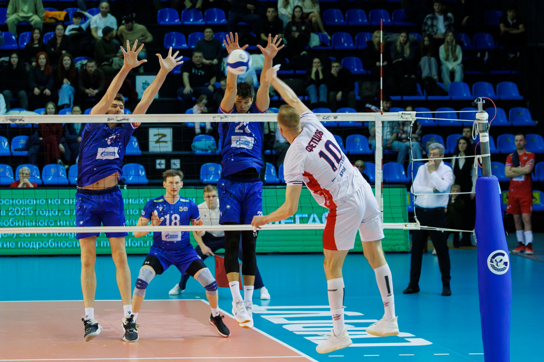 Срещата започна със сервис на Даниил Голованов, който преди мача получи наградата за най-добър играч в предварителната част на Международната лига. Обратно на предната линия, той отстъпи мястото си на мрежата на по-опитния Антон Андреев. Отборът от Сургут спечели предимство за пробив в началото благодарение на две грешки на Виталий Фецов, който скоро спря да прави грешки. Ударът на Виталий в тъч доведе до точка и равенство в таблото чрез видео преглед, 7:7.
