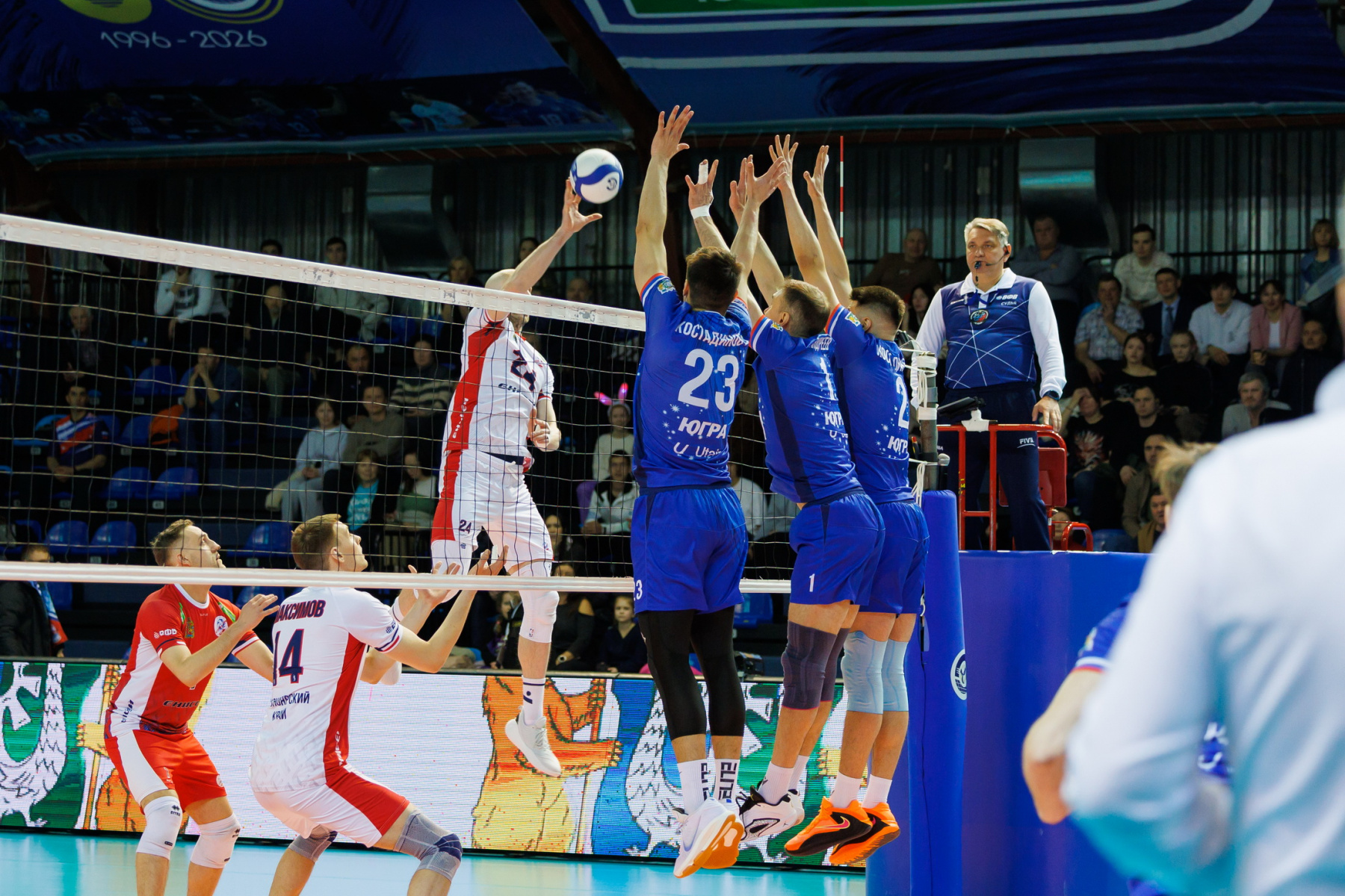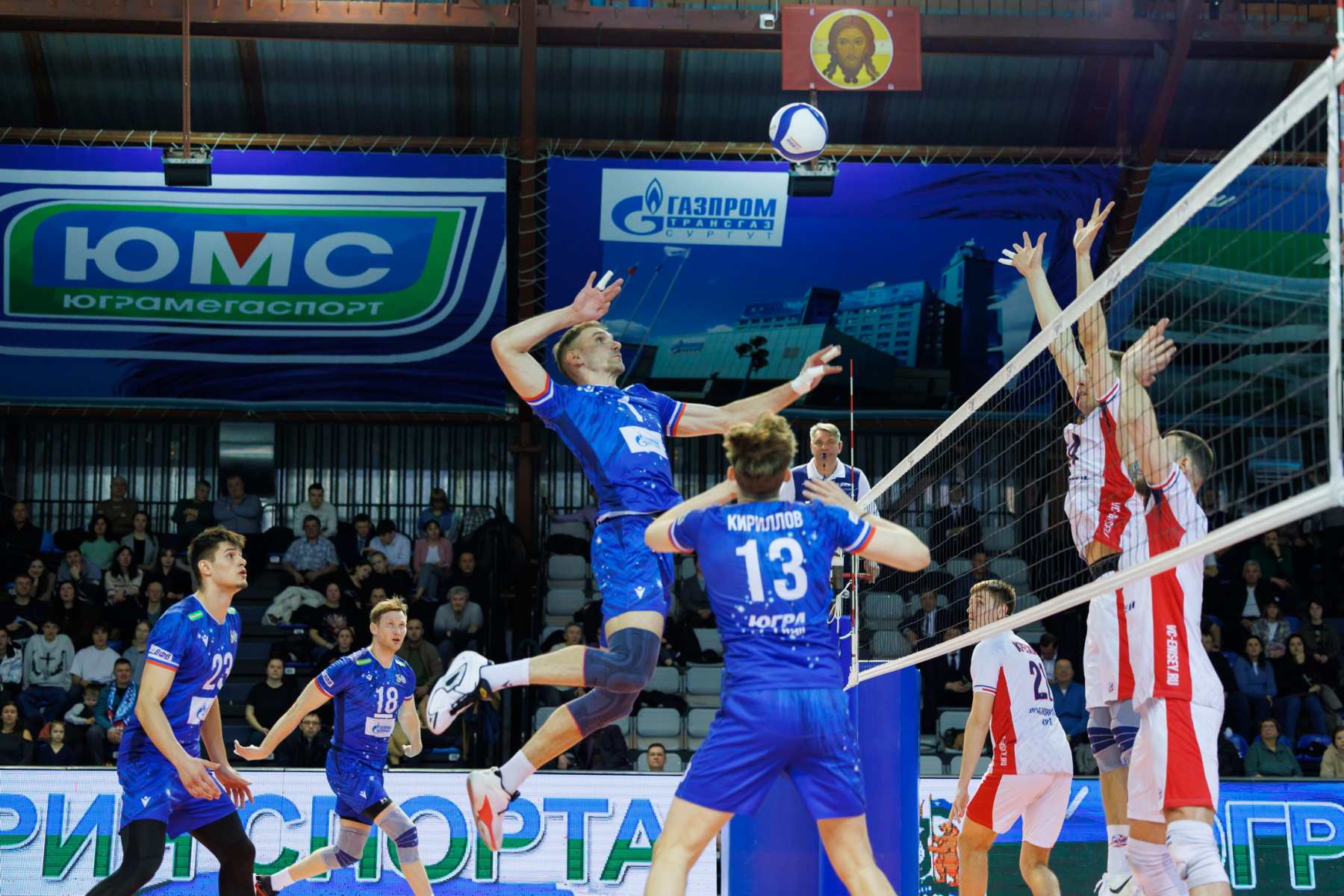 Во второй партии тенденция продолжается: некачественный прием югорчан ведет к брейкам красноярцев: Слави вынужден лезть в чужое воздушное пространство, Родичев не забивает на отведенном мяче, 5:7. Нагаец пропустил подачу в площадку от Осипова, а затем принял на сторону соперника, уступив весь объем работы Моисееву. После подачи в сеть Слави уступил место на площадке Кириллову. Тот активировал Юринского, но фрибол через Костадинова не был реализован, 13:16.