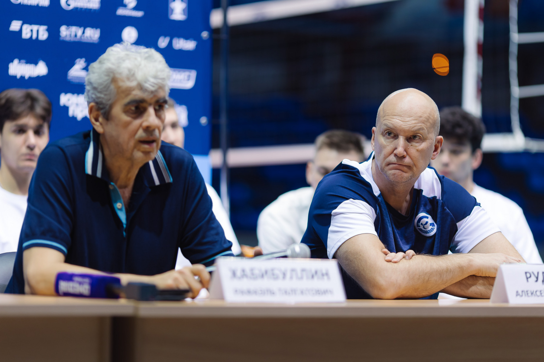 После кубковой победы над «Факелом» и перед отъездом на ответную игру в Новый Уренгой команда, руководство волейбольного клуба и тренерский состав нашли время для разговора с журналистами и болельщиками в максимально открытом формате. Заинтересованные лица на трибуне, команда на площадке, микрофоны там и там – получилось довольно душевное общение почти в домашней обстановке. Солировал, nat?rlich, Rafael Talgatovich.