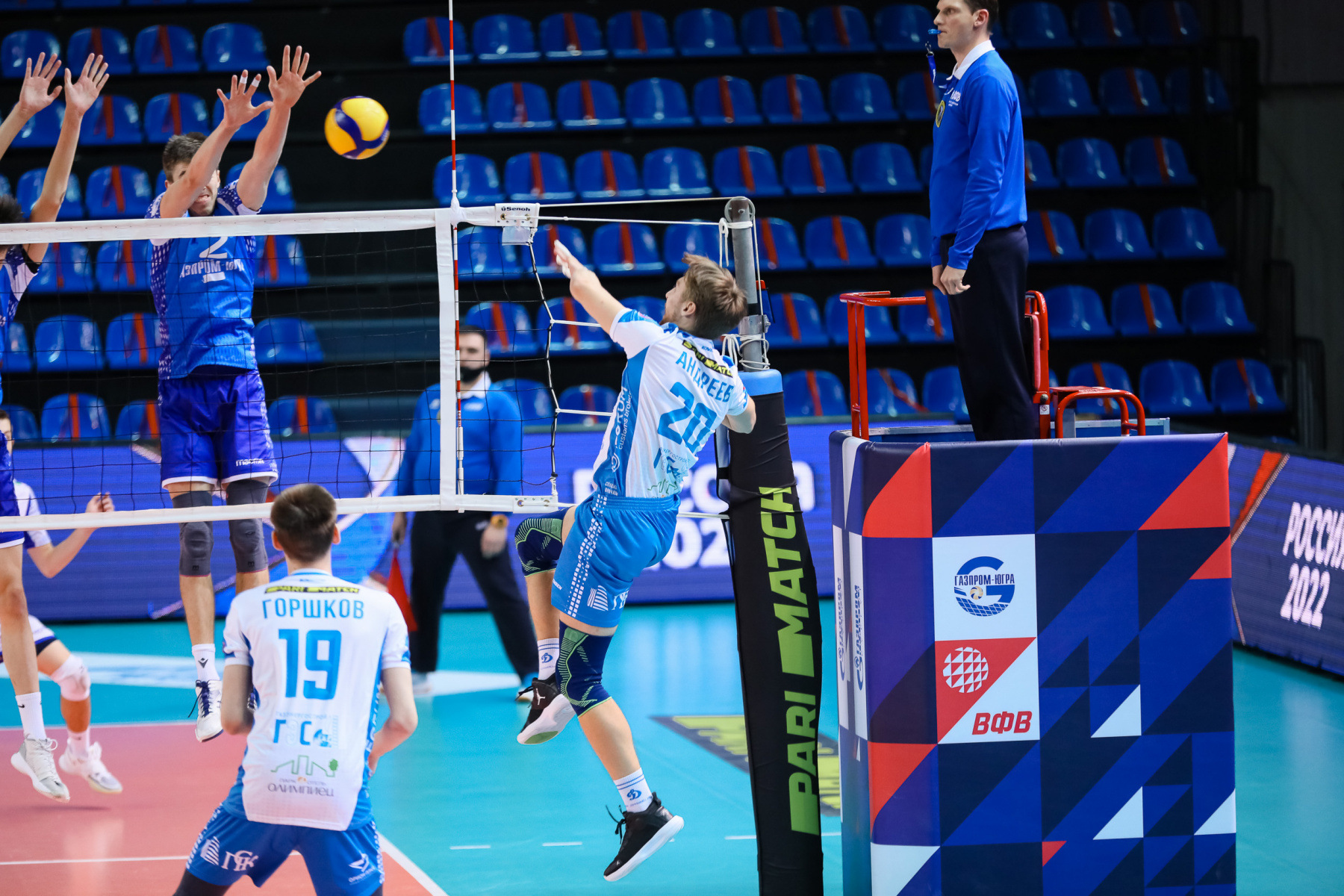 After the break, another team entered the court from the opponents. And although, in the first part of the set, Zvezda gained a three-point advantage - 9:6, Dynamo have already started running out. They have a block, powerful, quick attacks, but ours do not have time in defense and attack weakly and we come to the ending with an equal score – 22:22. What next – serve out at Zvezda, blockout from Dynamo attack, there is a bad reception, transfer of the ball without attack and retaliatory attack of the opponents from our block – out-of-bounds 22:25 and 1-1 by lots.