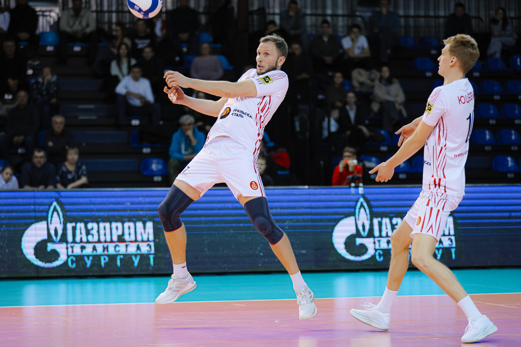 Senior trainer of VC Gazprom-Yugra Alexander Chefranov: Начали тоже неплохо, но при достаточно ровной игре в первой партии сами ее упустили. Сегодня помогла наша взаимозаменяемость игроков. Player, который выходил на площадку, давал определенные эмоции, помогал, где мог. Сегодня сыграли за счет общей командной игры. Чистоты идеальной еще нету, но прогресс есть. Все понимали, что соперник, what is called, the teeth, и отступать некуда. Это была пограничная игра, она показывала, где мы. Либо мы идем вверх, либо будем топтаться где-то внизу. Respectively, будем карабкаться наверх.