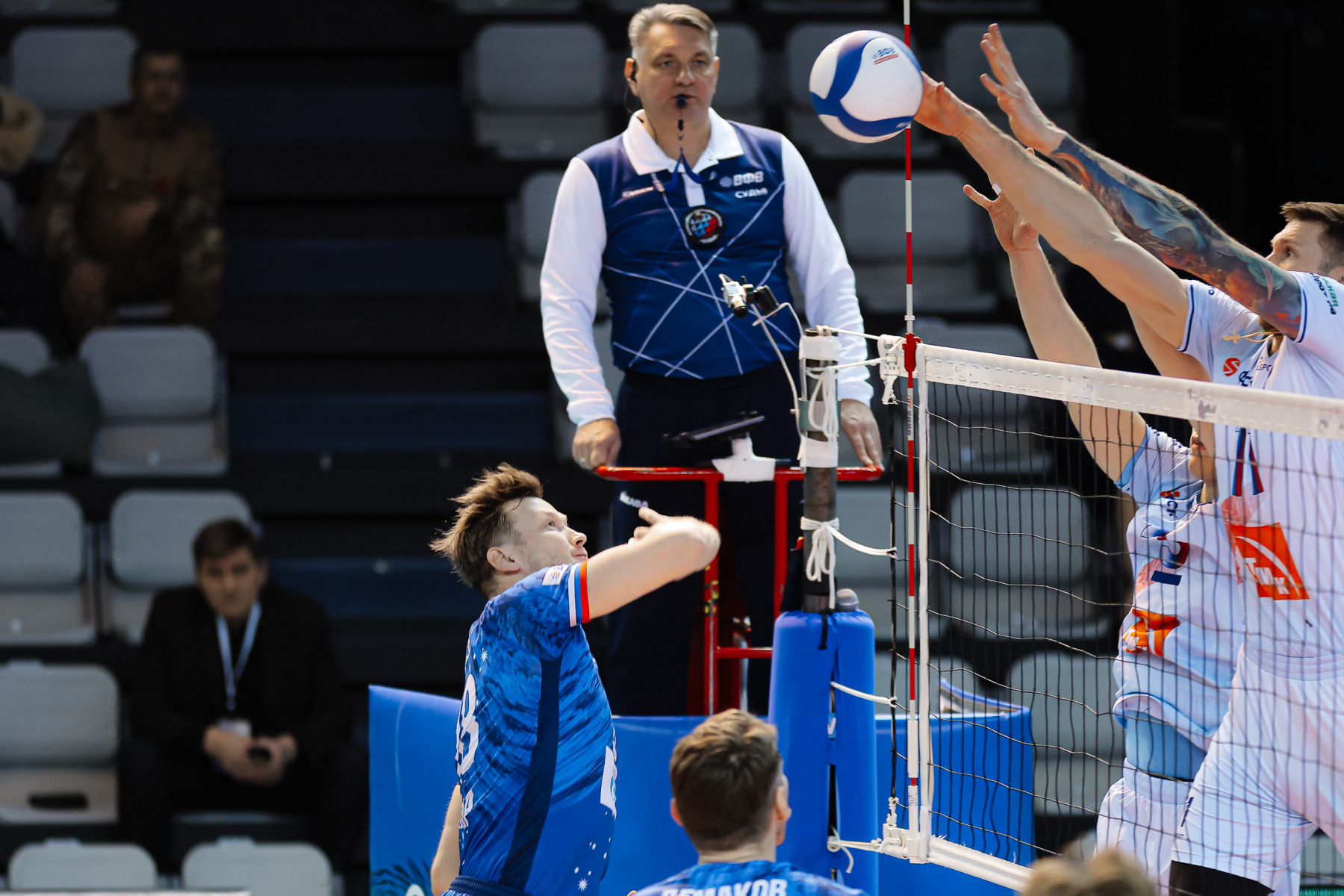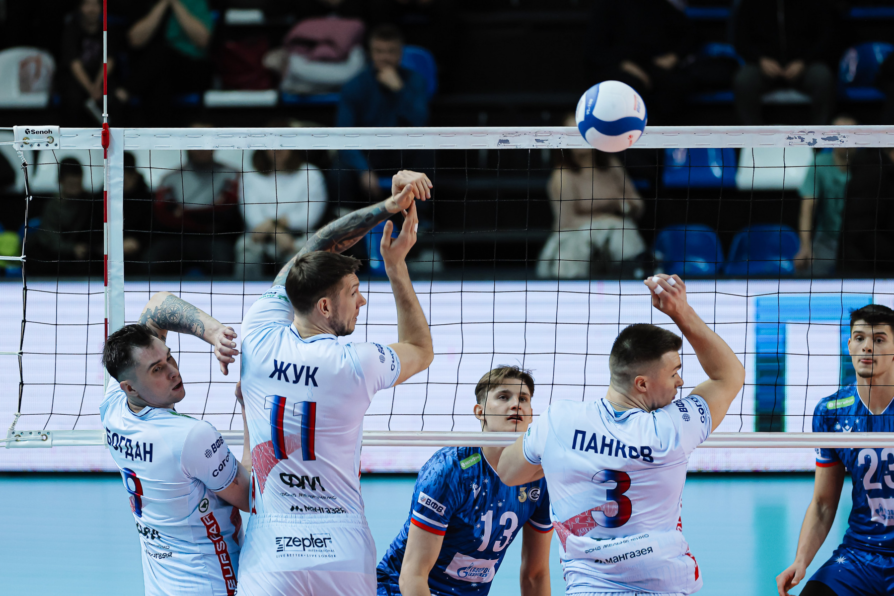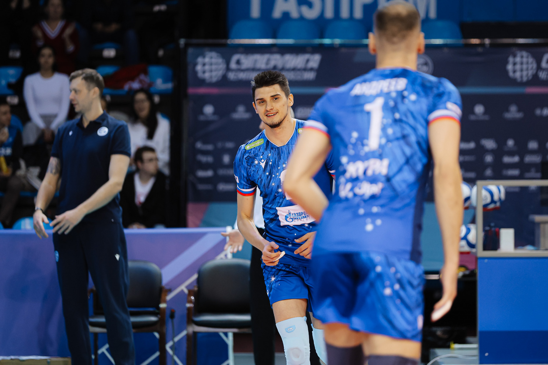Gazprom-Yugra continues to struggle with a series of injuries. This time there was a place in the application for Dmitry Shevlyakov and Pavel Kuklinsky, but, скорее это для полноты состава «в квадрате» – они продолжают восстановление, как и Кирилл Никифоров. Наша команда в третий раз в сезоне сыграла по схеме 4-2 – с двумя номинальными связующими Максимом Кирилловым и Слави Костадиновым, которые менялись функциями пасующего и диагонального.