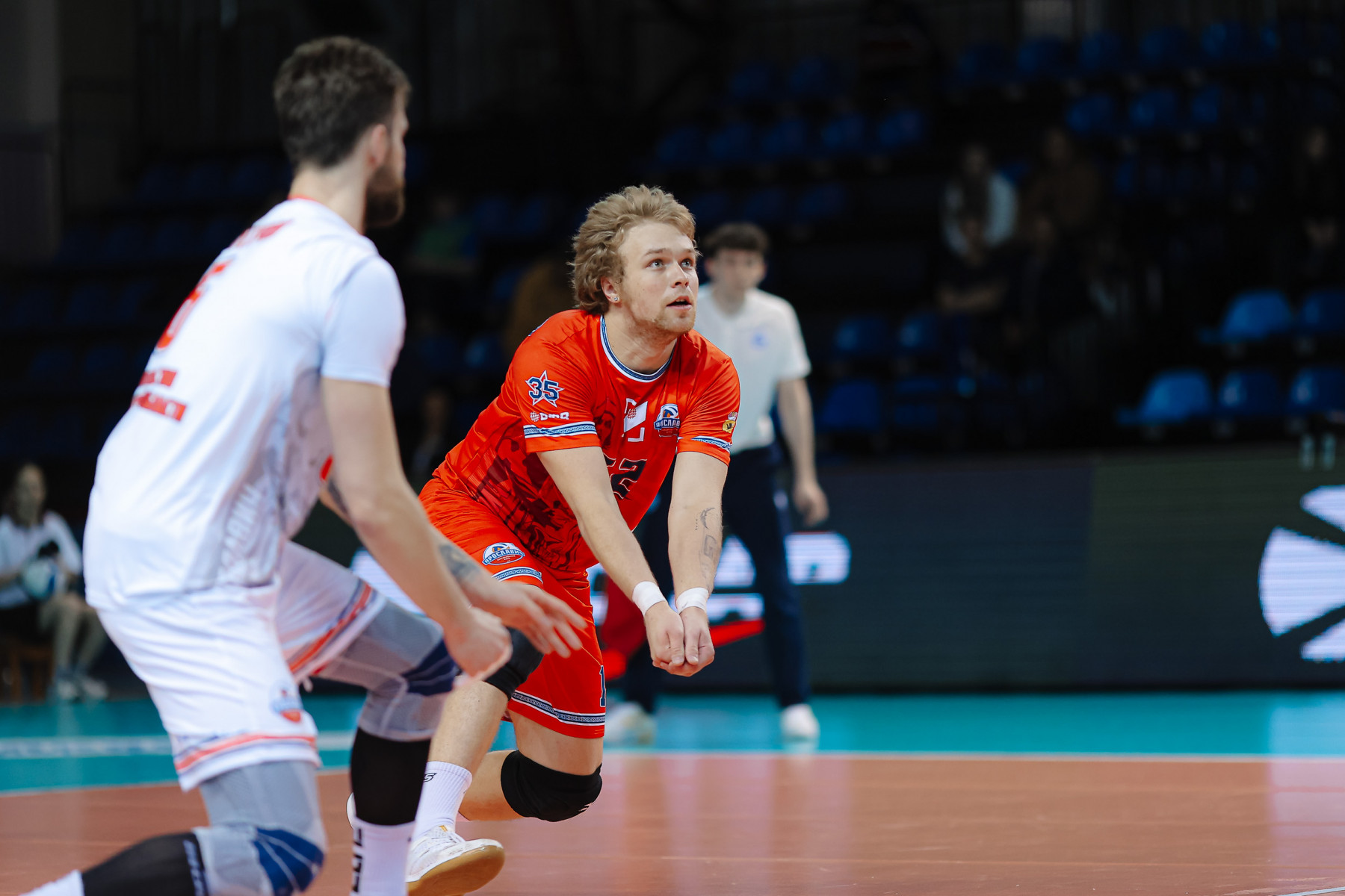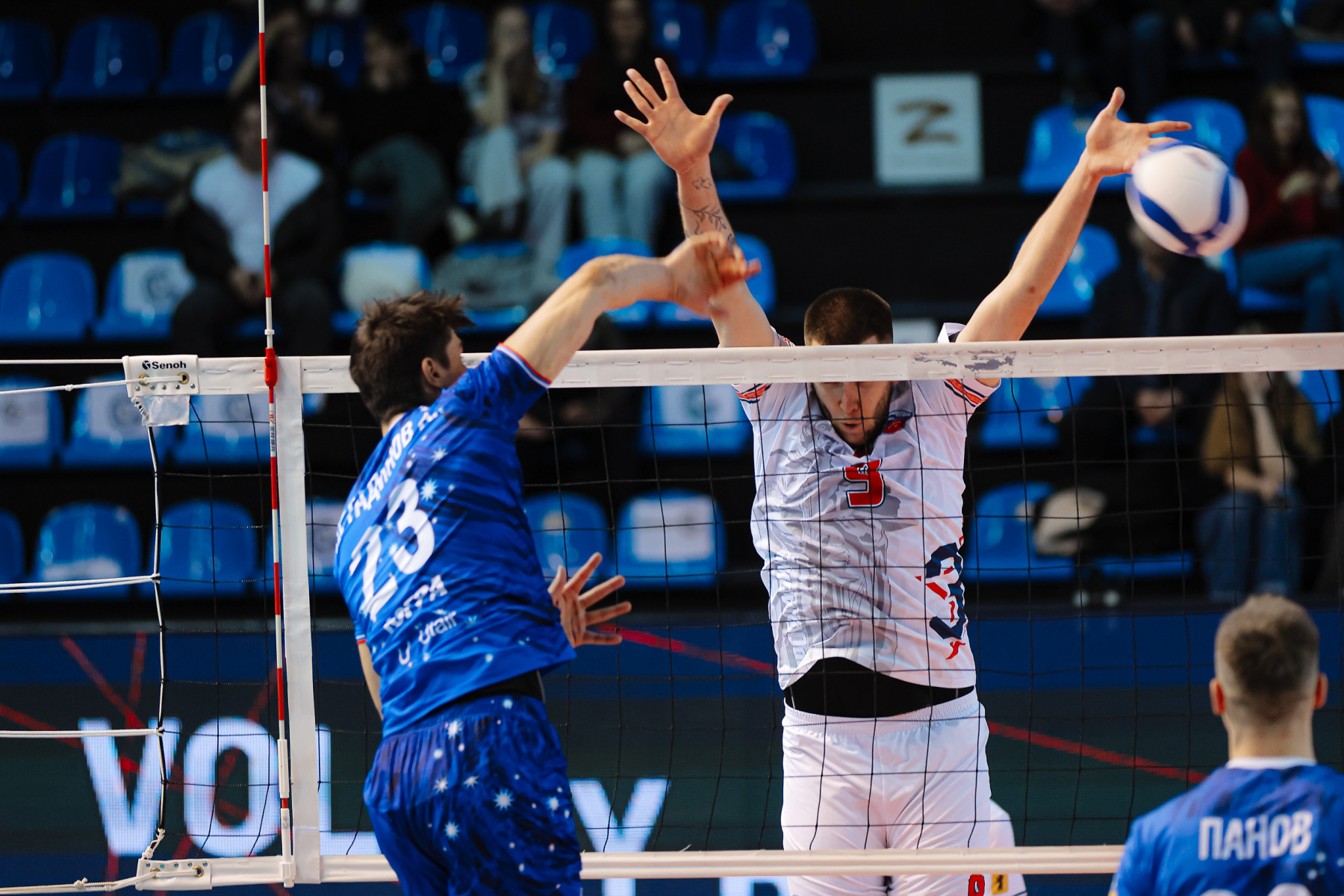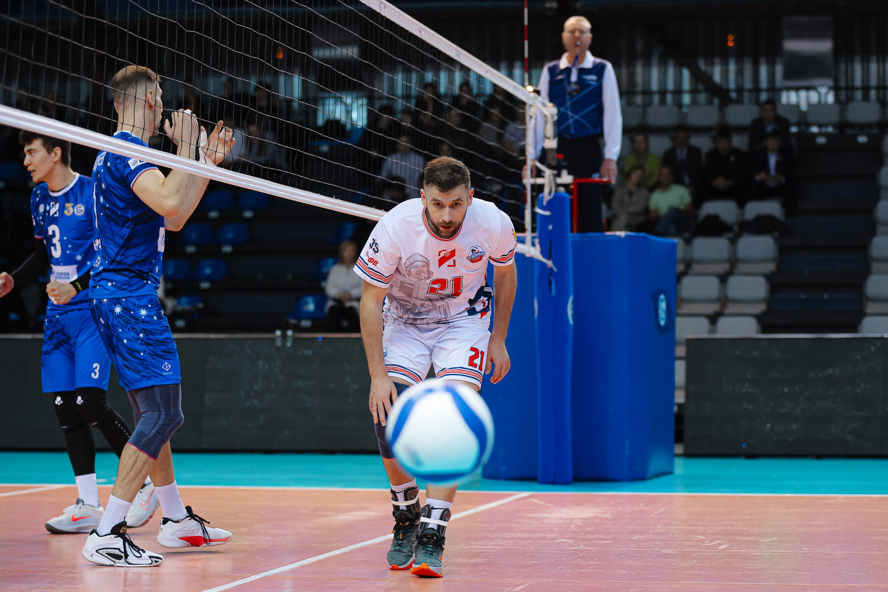 На выбитом приеме после мощной подачи Поторочина Юринский отправляет сложный мяч в аут, 21:22. Соперники идут шаг в шаг до отметки 25:25, после чего Кутлунин забивает очередной пайп, а Костадинов вновь не справляется с блоком, 25:27.