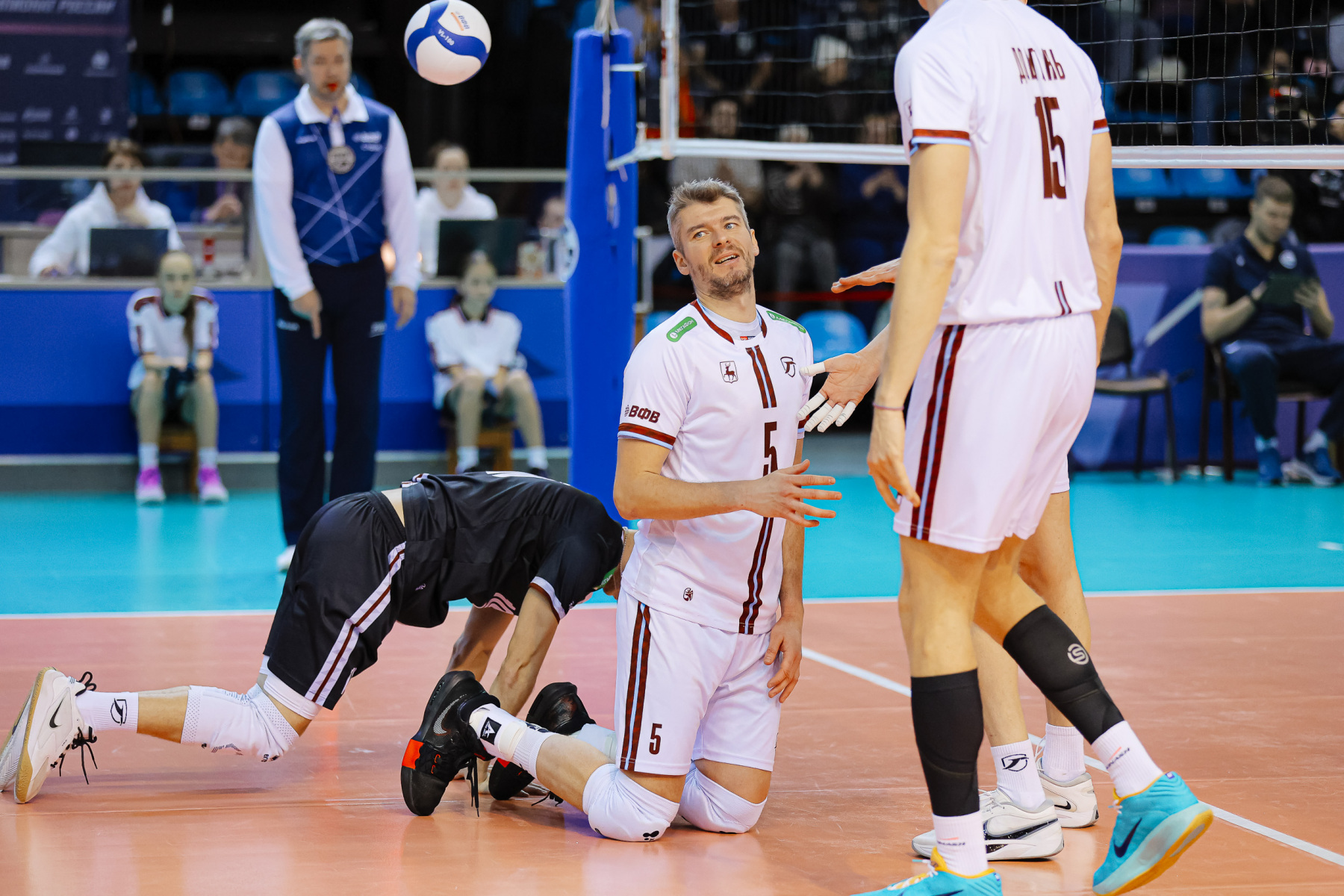 Литвинов вместо эйса после просмотра записывает на свой счет аут, 21:20. Масько ударом в аут срывает розыгрыш фрибола (22:20), но вскоре исправляется, закрыв атаку Литвинова, 22:22. Литвинов снова в блоке, но ситуацию спасает Родичев, отвечает Железняков, 23:23. Удар Родичева смягчен, но гости касаются сетки, что подтверждает видеопросмотр, 24:23. Ну и… эйс от Слави, 25:23.