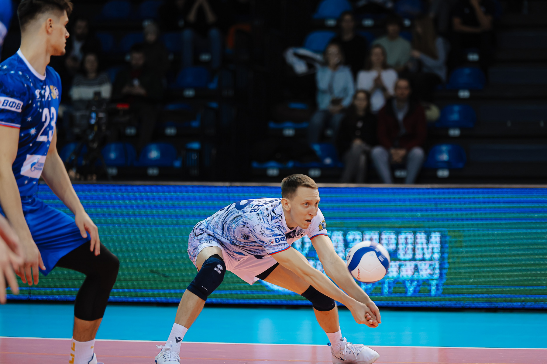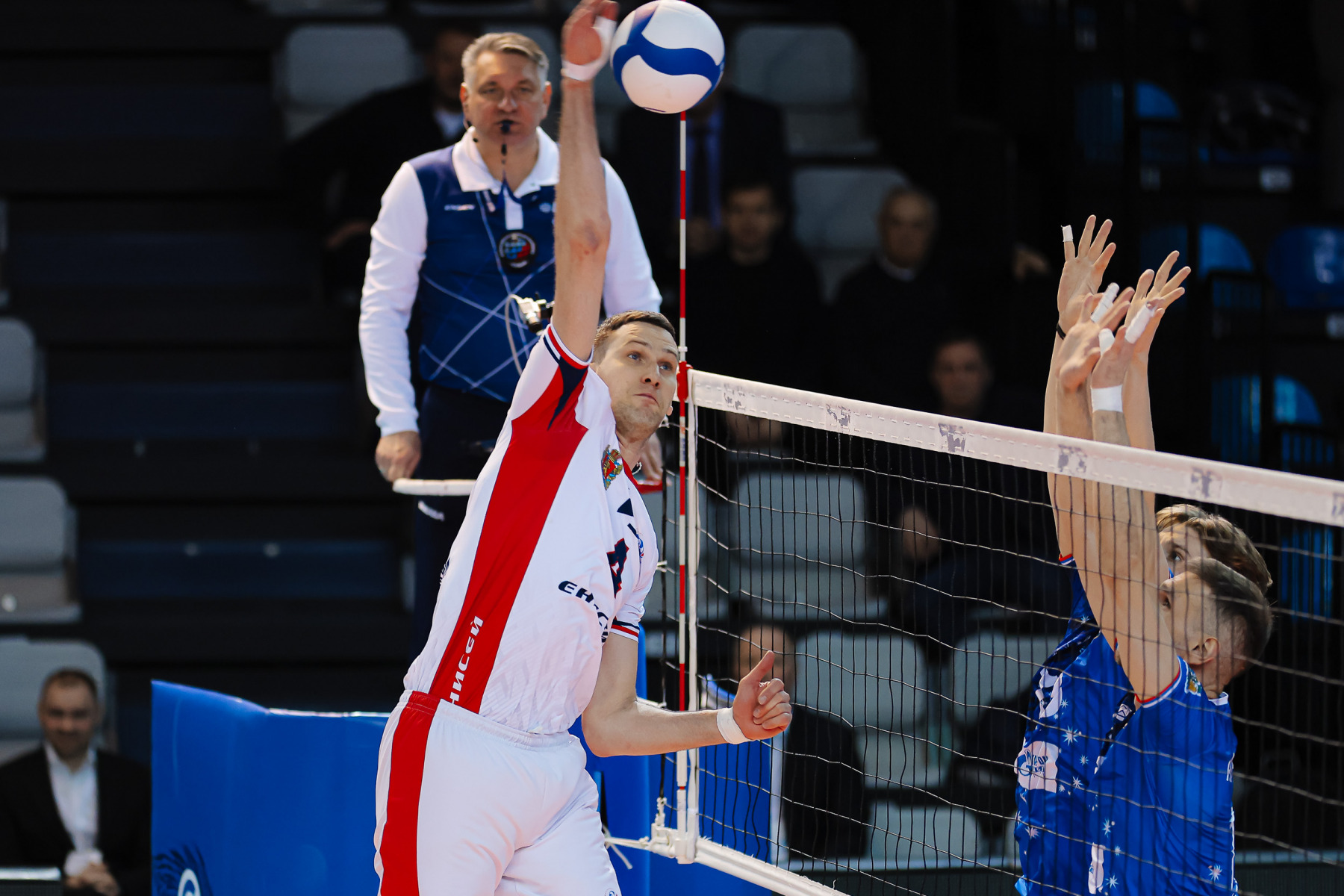Тут же Слави Костадинов тащит в защите мощный удар Фетцова, а Кириллов зряче скидывает в котел. Кухно в очередной отчаянной атаке загоняет снаряд под шкуру блоку, но Ткачев элегантно снимается в следующем розыгрыше, а лучший, quiz?s, игрок встречи Максим Кириллов двумя эйсами гасит последние надежды гостей, 25:19.