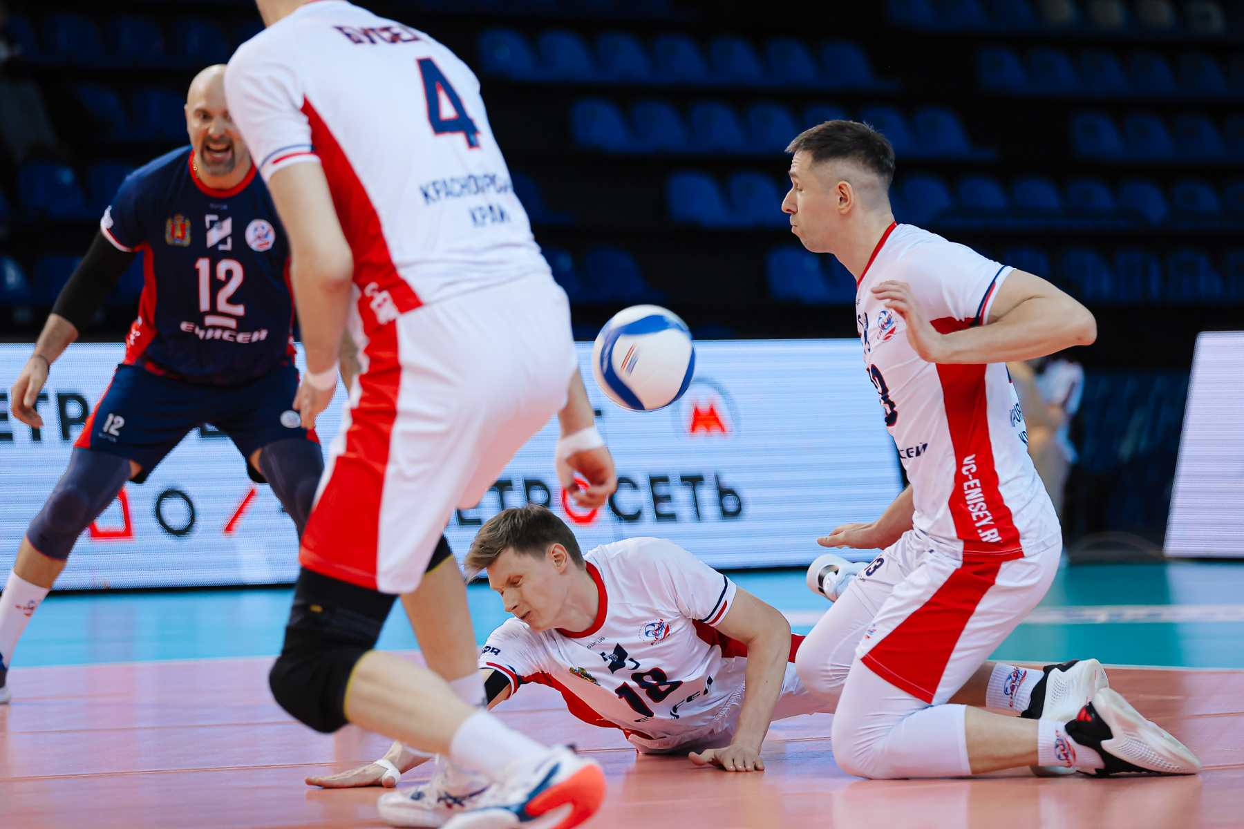 Важные брейки хозяева забирают на подачах Ткачева, отыгравшего сет вместо Андреева. Фетцов неуютно себя чувствует в четвертой зоне – сначала приходит в руки Демакова, затем бьет в аут, 18:15. «Енисей» пытается вернуться, Кухно решает затяжной розыгрыш с обоюдной прекрасной игрой в защите (20:18), а затем вроде бы забивает еще один важнейший мяч. Но просмотр хозяев устанавливает, что мяч в атаке не задел блок, а взятый тут же просмотр гостей фиксирует, что и в поле Никита не попал, 21:18.