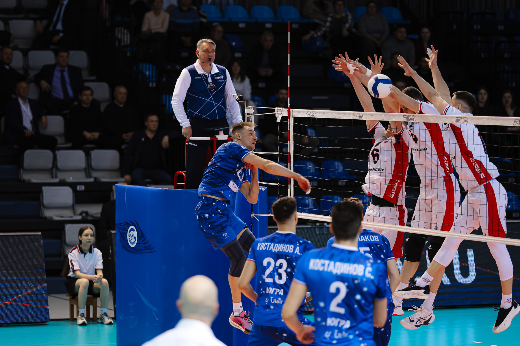 Los invitados alinearon a un par de jugadores suplentes para el partido., y los anfitriones se vieron obligados a jugar según un esquema ya probado con dos armadores en la cancha. Digamos de inmediato, que la idea del pueblo Yugra funcionó mejor. El comienzo del partido fue mejor para ellos. 5:1 Con una jugada arrastrada, Fettsova provoca una salida temprana de “Yenisey”. No ayudó: la defensa da juego extra, Panov y Alexander Kostadinov aportan el freno, 8:2.