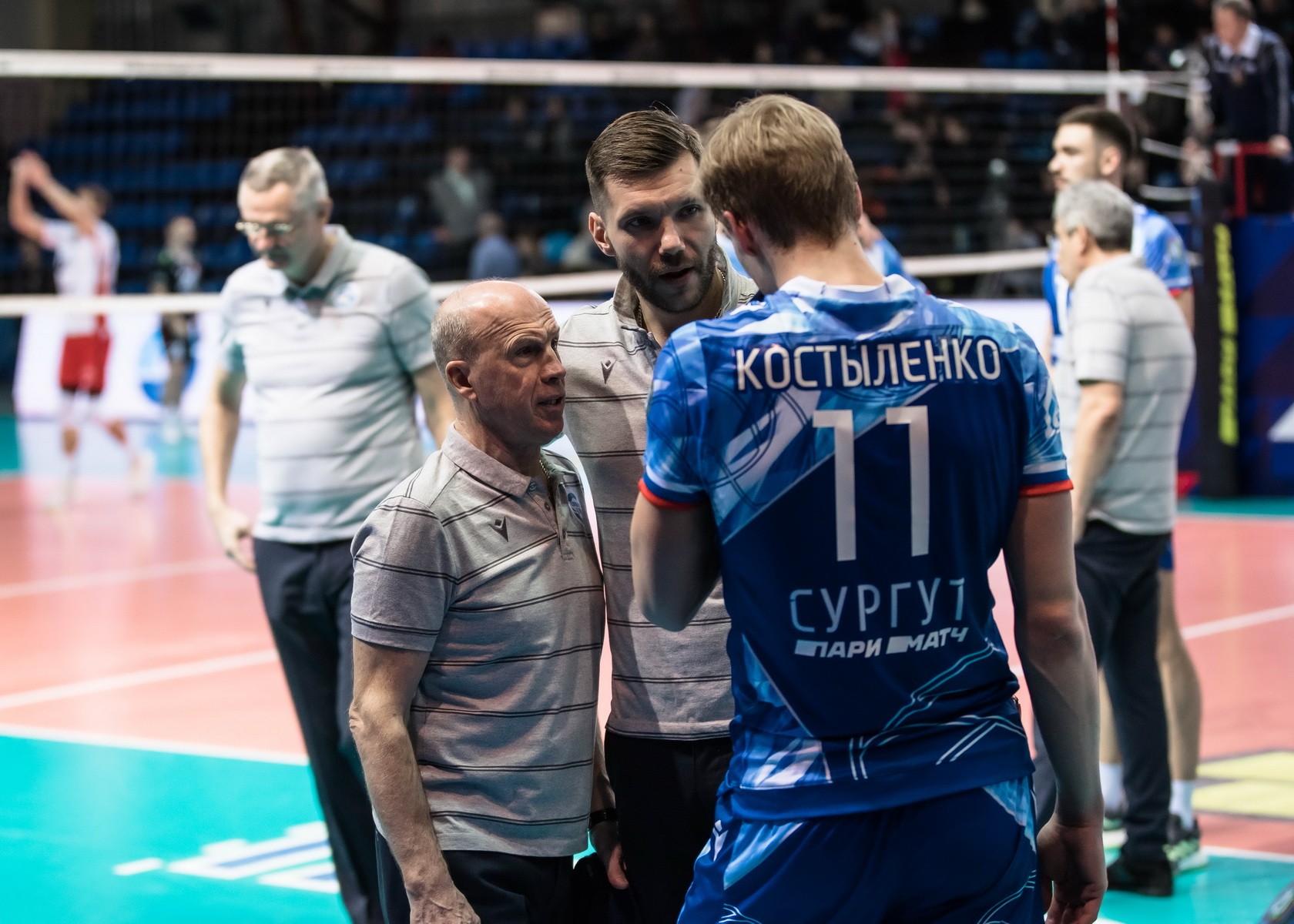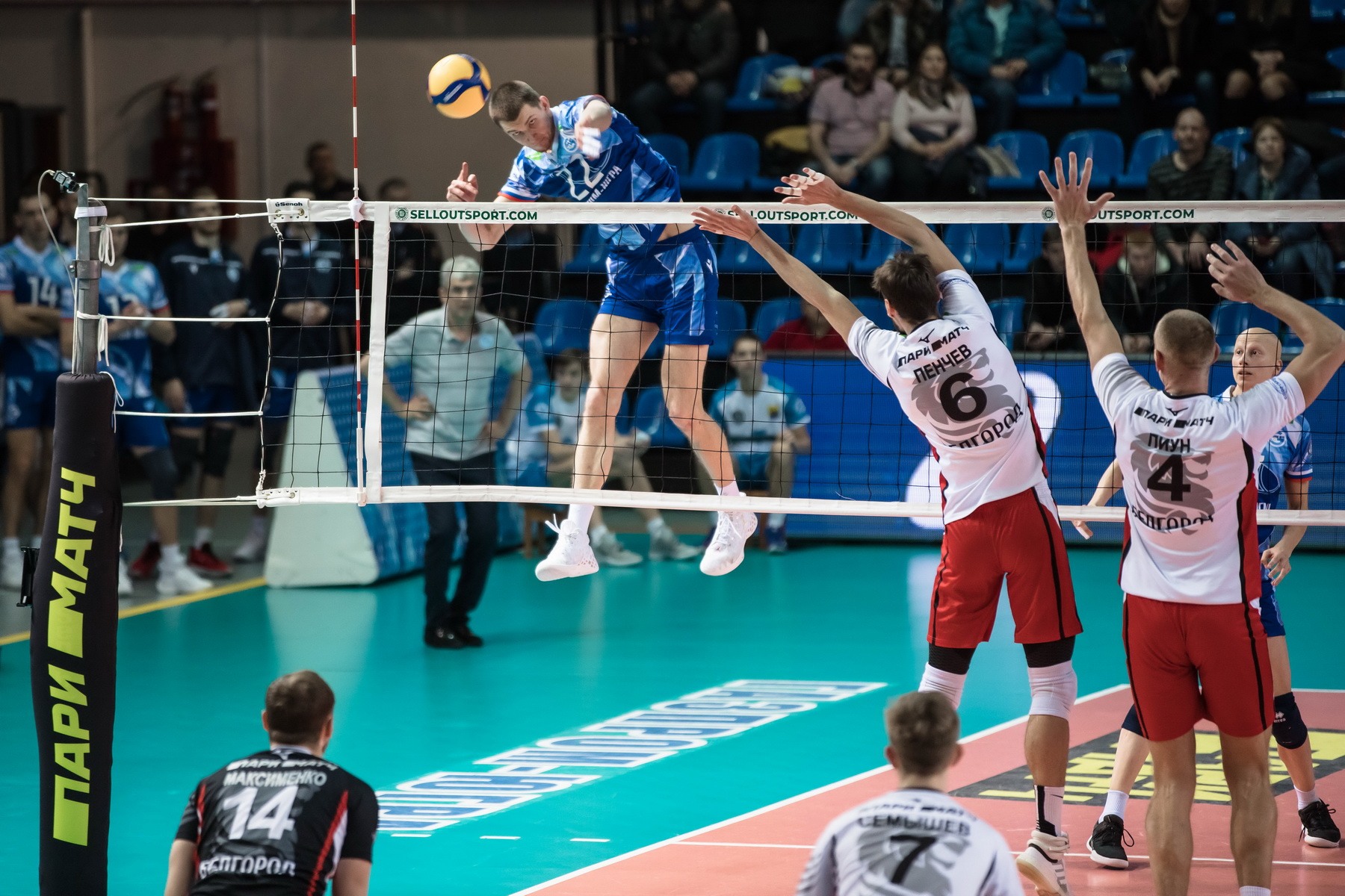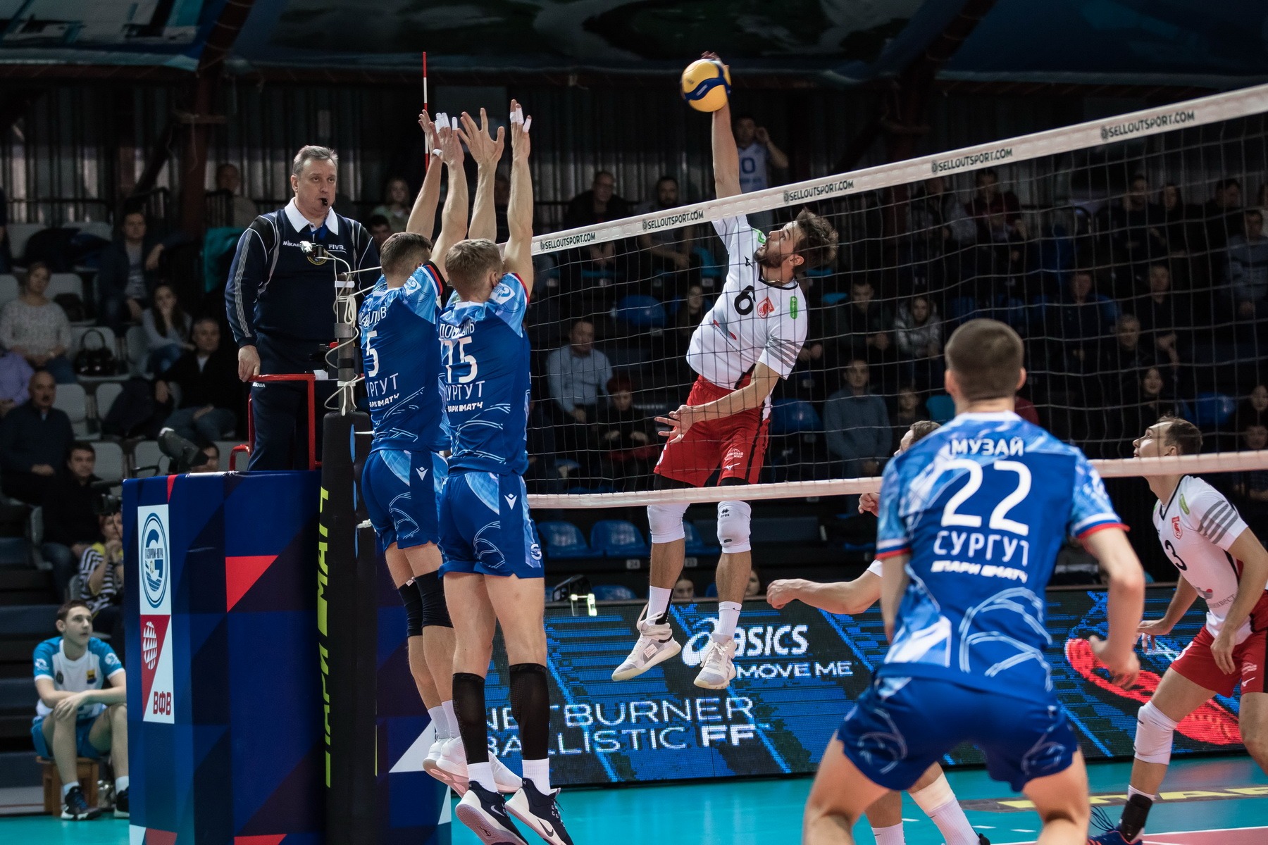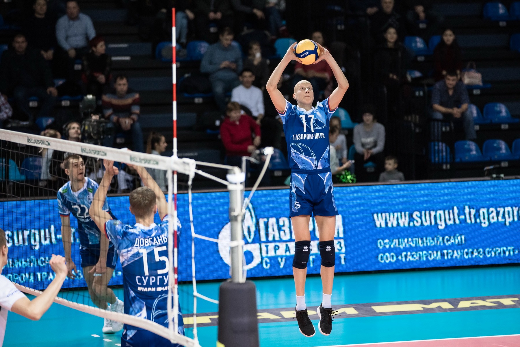 Le troisième set et nos homologues tentent de renverser le cours de la rencontre, au début du jeu, le score est égal - 5:5. Alexander Slobodyanyuk mène l'attaque, et Kirillov donne un as de marque, But - 9:6. Mais l'adversaire de Danil Goncharenko attaque aussi efficacement, Litvinenko donne un as et à nouveau un score égal - 11:11. Les équipes arrivent à la fin du set avec un score 21:18. Le premier pas de Tebenikhin augmente l'avantage de Surgut. Maxim Kirillov attaque sur une balle de défi du service de Stradomsky, et notre capitaine ace met un point de victoire dans le jeu. 25-18. Score total 3-0. Bien joué.