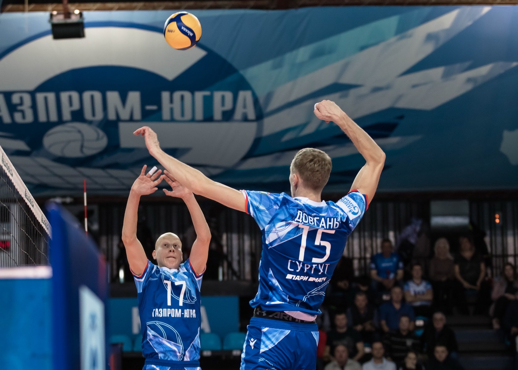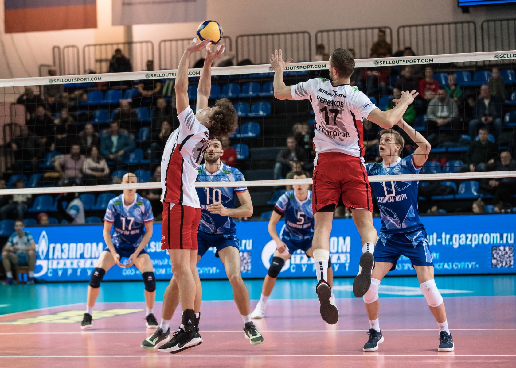 Le jeu commence et à l'ouverture, l'excitation affecte les joueurs des deux équipes et, par conséquent, – erreurs de diffusion. Bon en attaque Pavel Vakhmyanin, le bloc Kirillov-Tebenikhin est en service, mais l'équipe de Nizhnevartovsk est également efficace pour attaquer et le score sur le tableau de bord est égal - 10:10. Pavel Tebenikhin attaque au premier pas – déjà sur le tableau de bord 15:13, "Star of Yugra" continue et continue de gagner des points de rupture. "Université" attaque hors des limites – 22:15 sur le tableau, bon avantage pour Surgutyans dans le score en fin de match. Pavel Stradomsky attaque et le ballon de Zvezda sort avec le score 24:16, et Tebenikhin complète le set avec une attaque avec le premier tempo - 25:17. Le premier lot pour les chirurgiens (1-0).