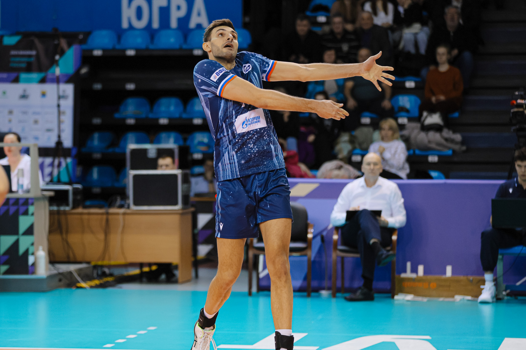 Суперсейв дарит партнерам Нагаец, ногой поднимая удар Феоктистова, но Родичев не укладывает мяч в поле, 13:8. Эпизод придает уверенности гостям, им почти удается погоня: Костадинов плывет в приеме, 14:9 на подачах Феоктистова превращаются в 14:13. Двойная замена у «Газпром-Югры», Костадинов снимается и «Газпром-Югра» вновь убегает вперед на планерах, теперь в исполнении Шевлякова. Титич системно не помогает в атаке, Руднев и Костадинов хороши в доигровках, 19:13. Теперь суперзащита в исполнении гостей, Падо ногой поднимает выстрел Бескровного, 19:15. Масько меняет Костадинова, а гости удерживают добытую дистанцию, 22:18. Деморализующе действует эйс Бескровного – принимающие его пропустили, помышляя об ауте, а мяч клюнул в линию, 23:18. Сургутяне включили защиту, гости влезли в сетку, Литвинов рискнул на аварийном мяче и пришел в блок, 25:19.