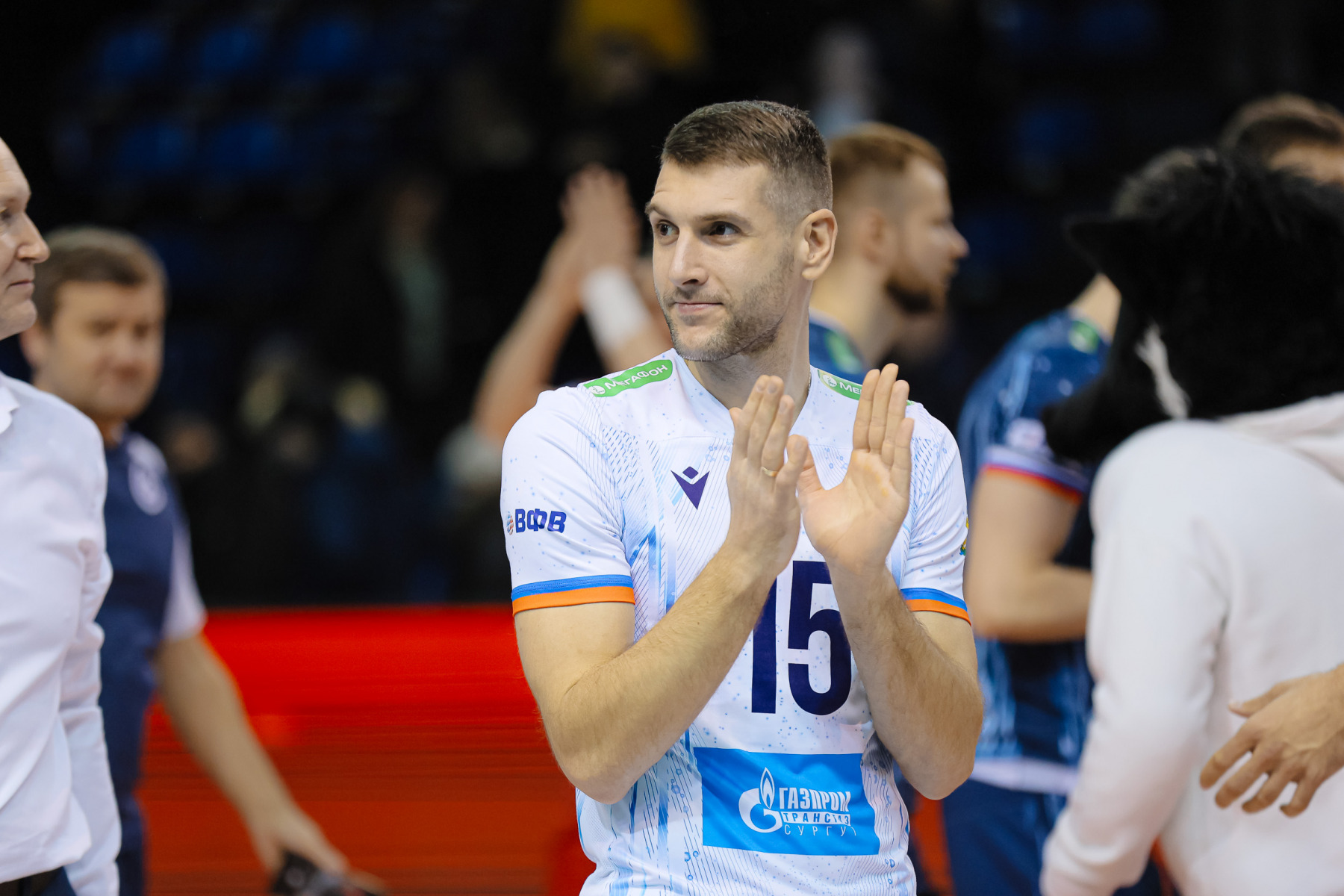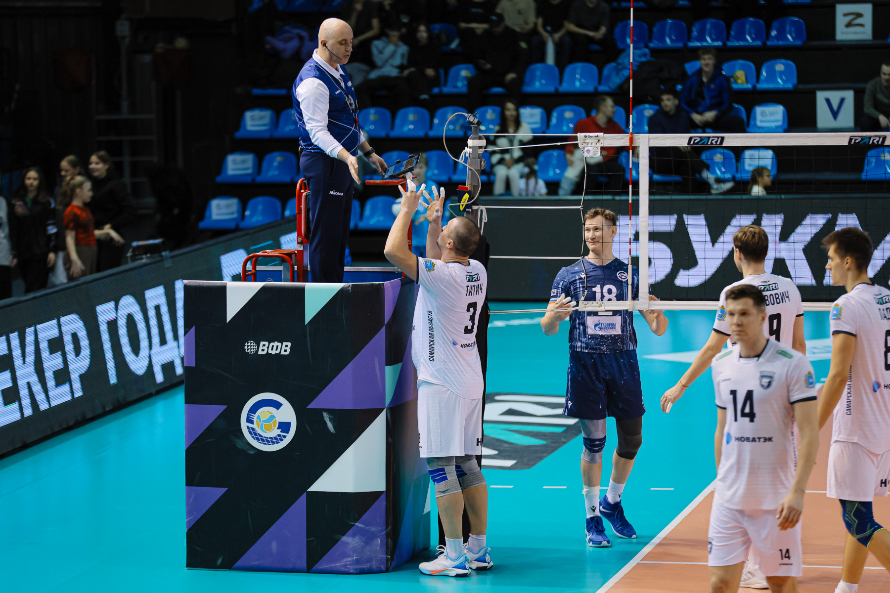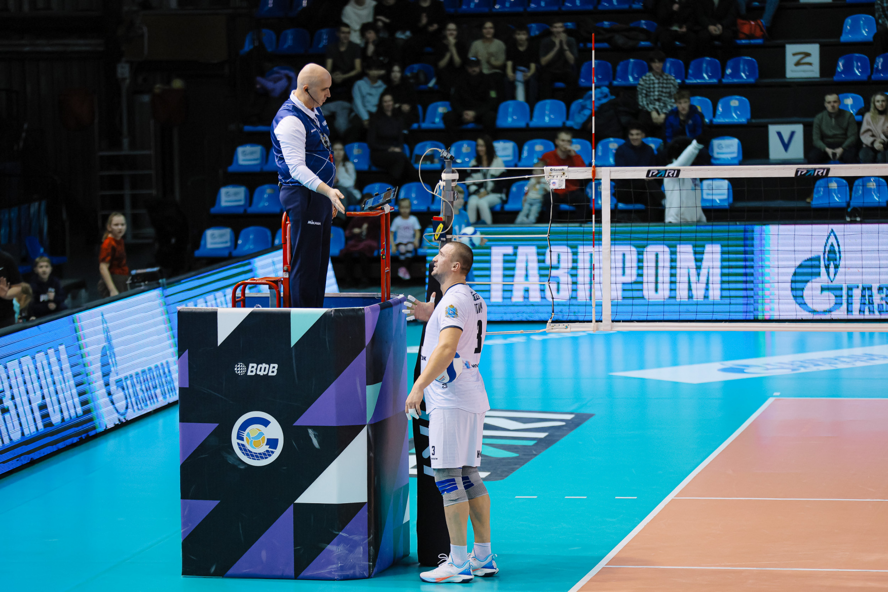 В третьей партии на площадке вместо Костадинова – Родичев. Капитан сургутян вынужден выйти играть с небольшим повреждением. Возвращаются Кириллов и Папазов, а болельщики наблюдают дежавю первого сета – 5:2 после удара Литвинова мимо линии. Сургутяне наращивают обороты: Папазов забивает сложный мяч, 7:3. Он же один в один закрывает линию Шпилеву, 9:4. Костадинов планером зарабатывает второй эйс, Шпилев не справился, 11:5. В деле Андрей Титич.