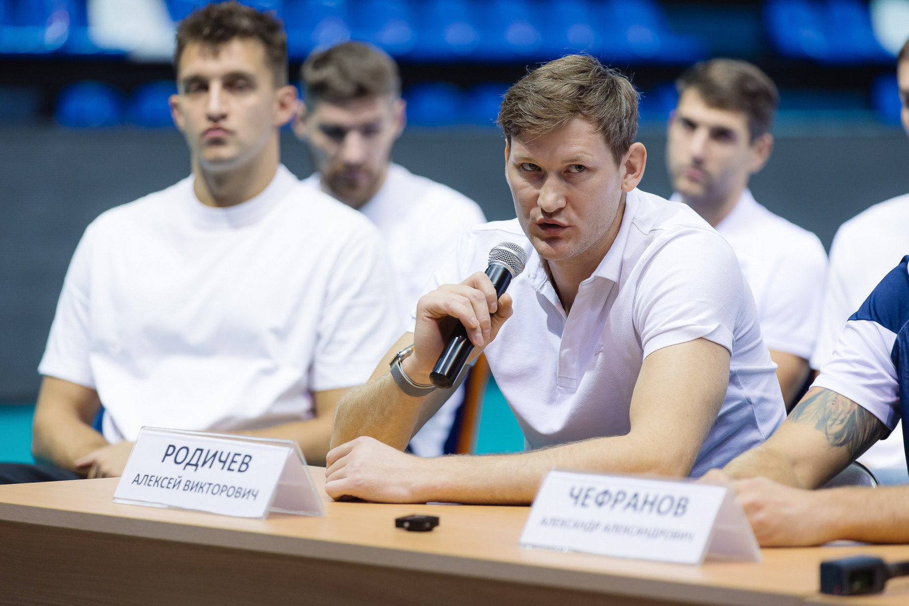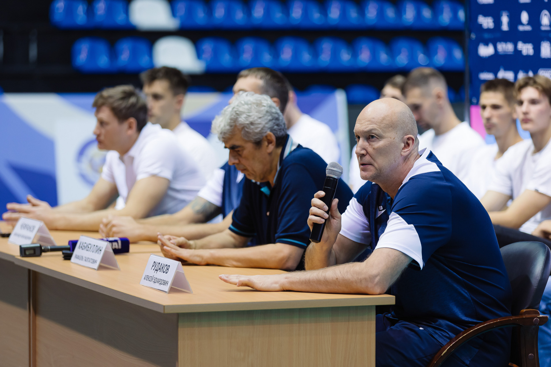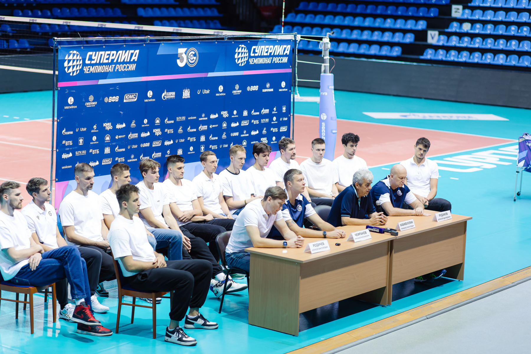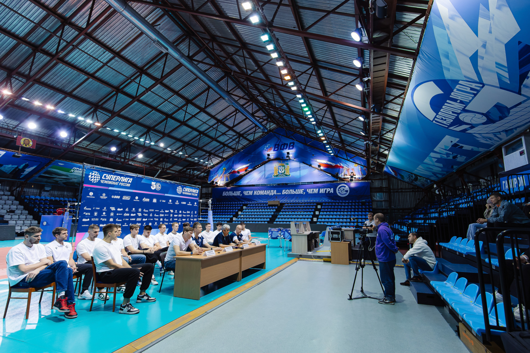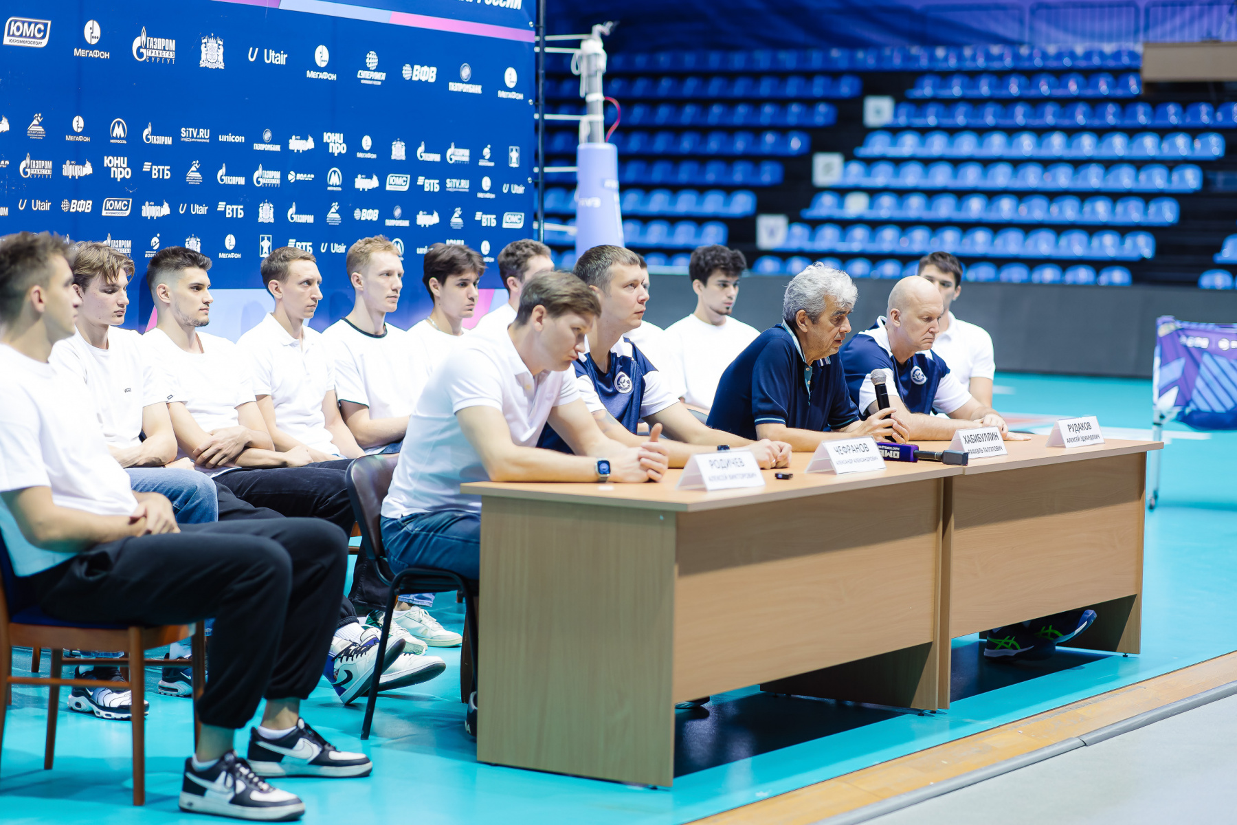 Après la victoire en coupe contre Fakel et avant de partir pour le match retour à Novy Ourengoï, l'équipe, La direction du club de volley-ball et l'équipe d'entraîneurs ont trouvé le temps de discuter avec les journalistes et les supporters dans le format le plus ouvert. Les acteurs sur le podium, équipe sur place, des microphones ici et là – cela s’est avéré être une communication assez intime presque dans un environnement familial. Soliroval, bien s?r, Rafael Talgatovich.