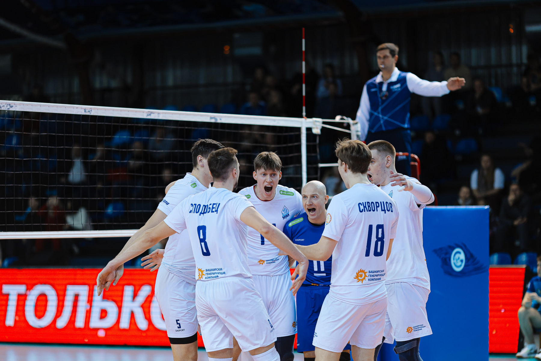 У гостей были все шансы развернуть игру, хозяева плыли на приеме, но на сей раз Сподобец со второй попытки ударил по тросу в аут. А затем два касания у вышедшего вместо Крсмановича Якутина, 18:16. Чекмизов скидывает уходящий мяч – видео фиксирует игру на чужой стороне, 19:16. Чекмизов еще раз «залетает» в чужое пространство, выковыривая мяч после наведенного приема, 20:17. Поталюк оставляет динамовцев в игре, но слово берет Слави Костадинов. Сначала недрогнувшей рукой отдает длинную зону Шевлякову – чуть ли не в первый раз взаимодействие идеальное и его не ждут. А затем кладет два эйса, отдохнув между в тайм-ауте «Динамо-Урала», 23:18. Родичев по-капитански решает сложный мяч на организованном блоке, 24:19. Снова съем через Поталюка, а затем Куклинский бьет в аут и уверенно показывает, что было касание блока. Югорчане потихоньку празднуют победу, потихоньку идет дежурный видеопросмотр, который после детального изучения вновь с участием главного арбитра показывает, что матч продолжается, 24:21. Длинная пауза выбила из колеи Поталюка – его подача летит в аут, принося уже неоспоримую победу хозяевам.