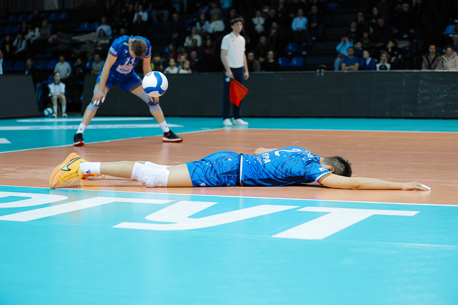 peut-?tre, решающий эпизод сета а, peut-?tre, и матча произошел на отметке 22:22. На подачу у хозяев вышел Бобров и визуально выбил эйс. Мяч гости как-то отскребли от пола и перебросили через сетку, судьи дали доиграть – и Родичев дважды не справился, отправив со второй попытки мяч по тросу в аут. Напрашивался видеопросмотр на предмет попадания мяча в площадку, но вместо этого хозяева сделали запрос на касание блока, которого не было. Такие проигрыши деморализуют и Мозжухин этим воспользовался, 22:24. Родичев отыграл один сет-бол, но второй Романо забил – у Куклинского и Никифорова был шанс спасти мяч, но они помешали друг другу.