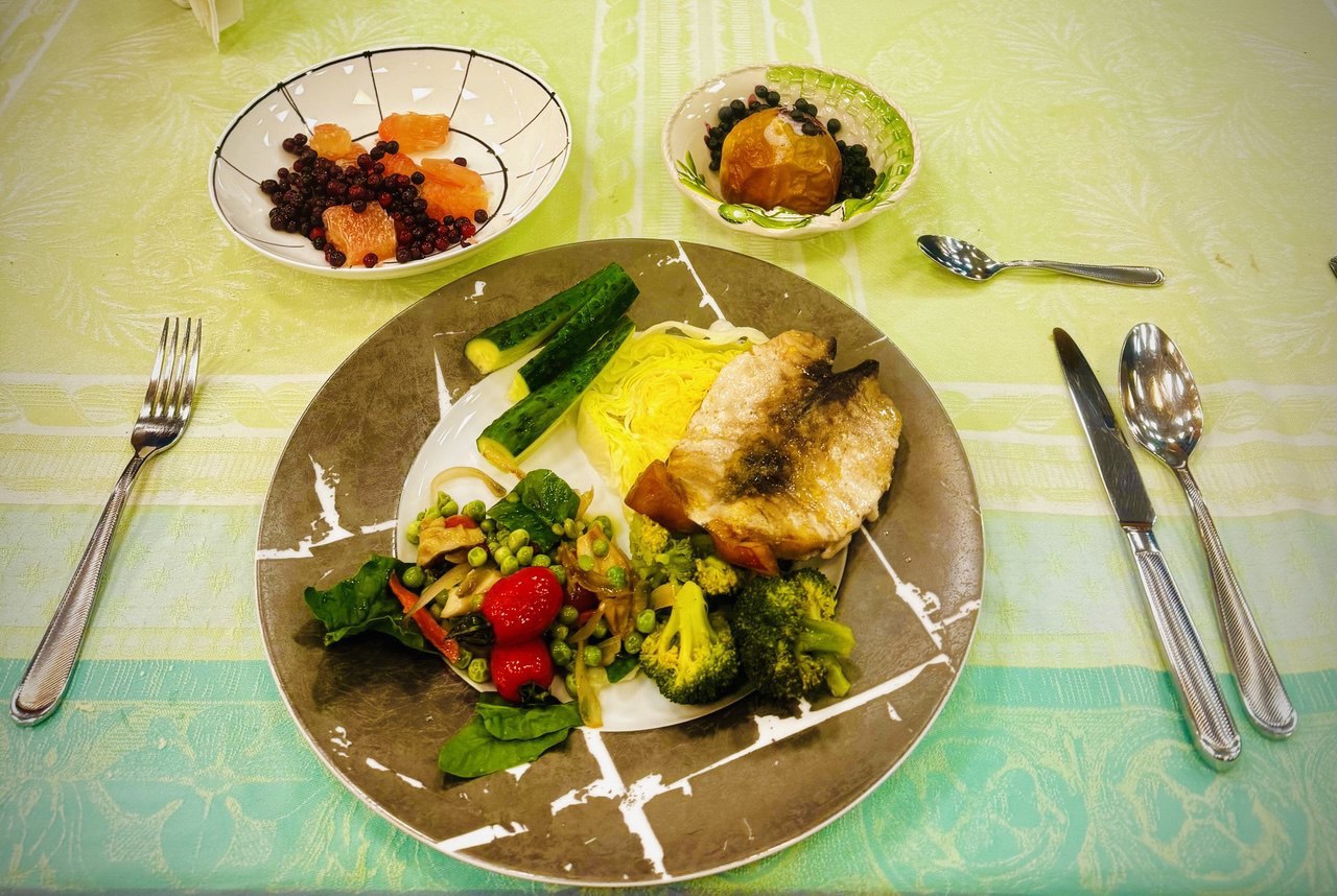 - акцент на сложные углеводы, нежирные белки, клетчатку;
