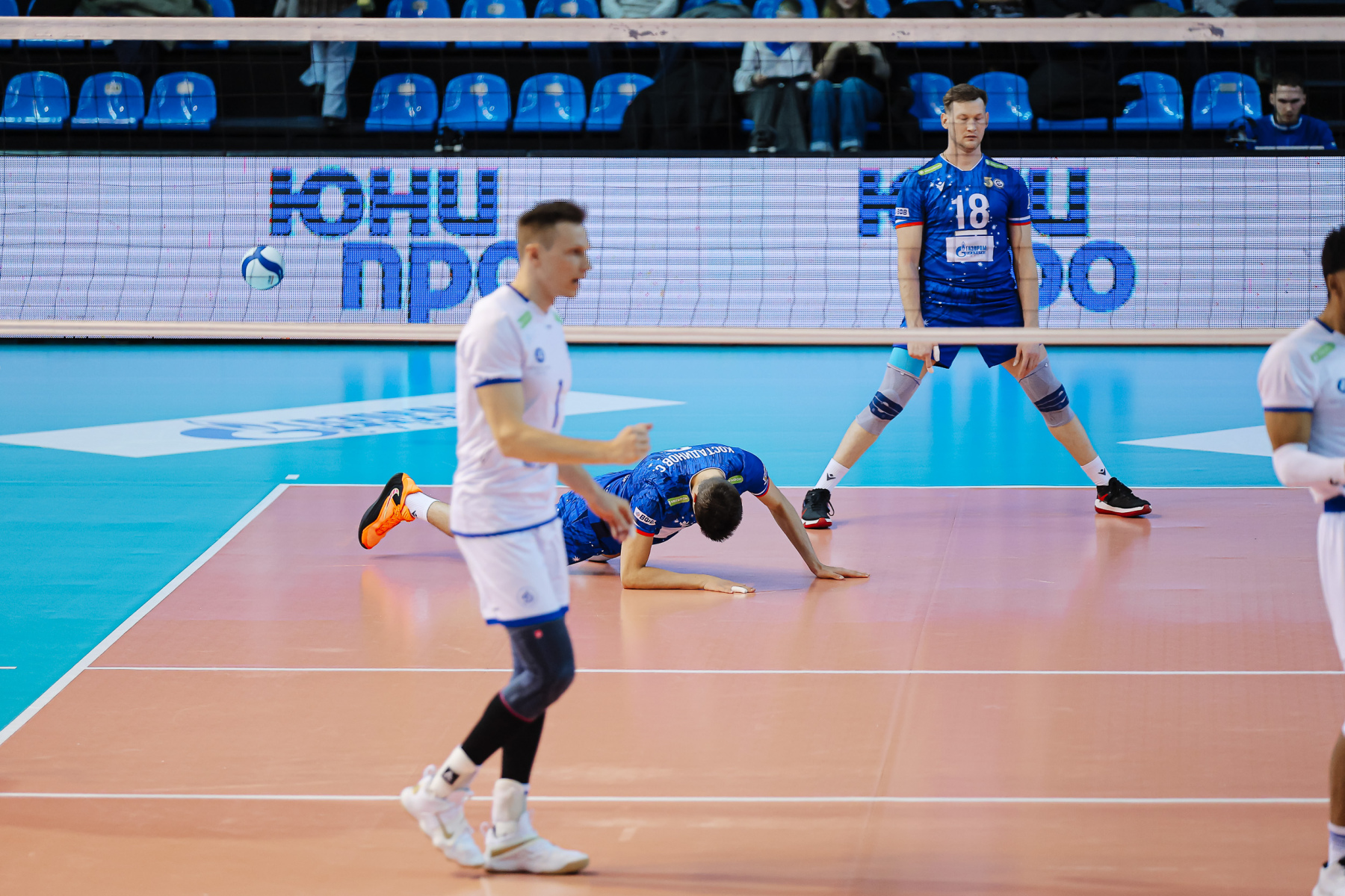 Панов чуть-чуть не укладывает мяч четыре по четыре, Родичев прихрамывает в атаке, Мурашко по темпу обыгрывает скидкой блок, мощно подает и доигрывает, а затем оформляет чистый эйс,16:18. Сургутяне держатся в кильватере благодаря подаче Панова и атаке Юринского, но именно Павел на обыгрывает блок на сетболе, 23:25.