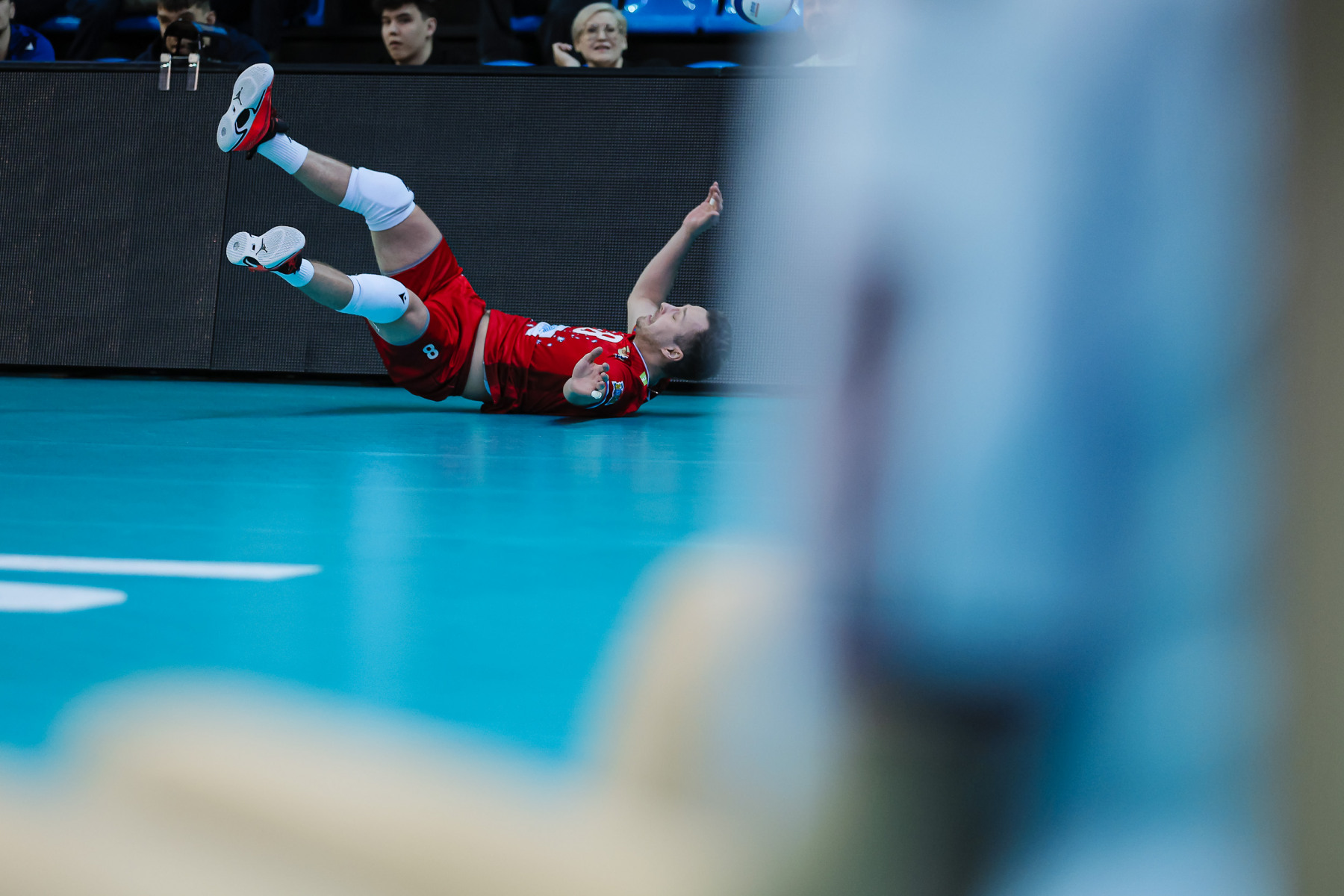 Панов чуть-чуть не укладывает мяч четыре по четыре, Родичев прихрамывает в атаке, Мурашко по темпу обыгрывает скидкой блок, мощно подает и доигрывает, а затем оформляет чистый эйс,16:18. Сургутяне держатся в кильватере благодаря подаче Панова и атаке Юринского, но именно Павел на обыгрывает блок на сетболе, 23:25.