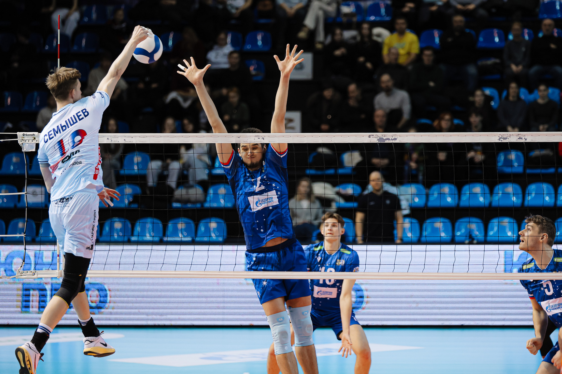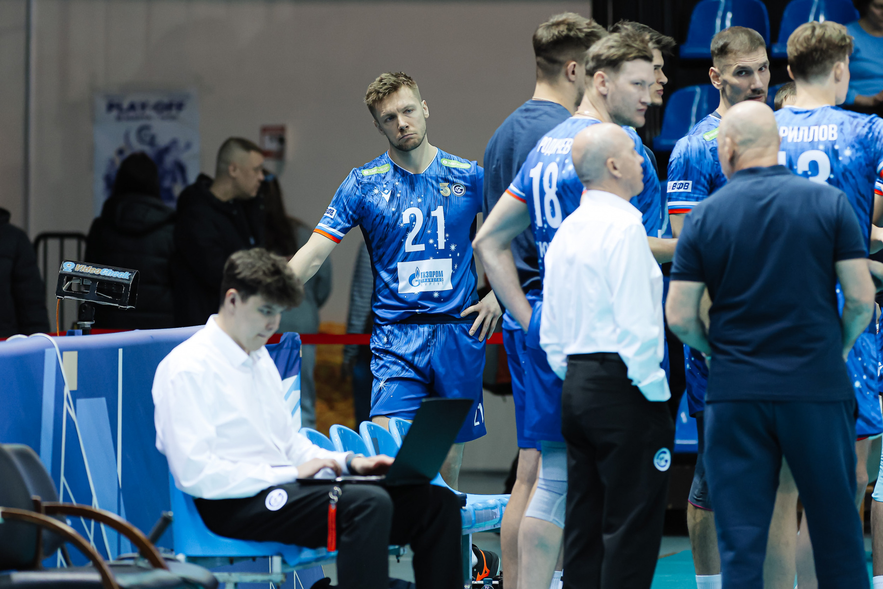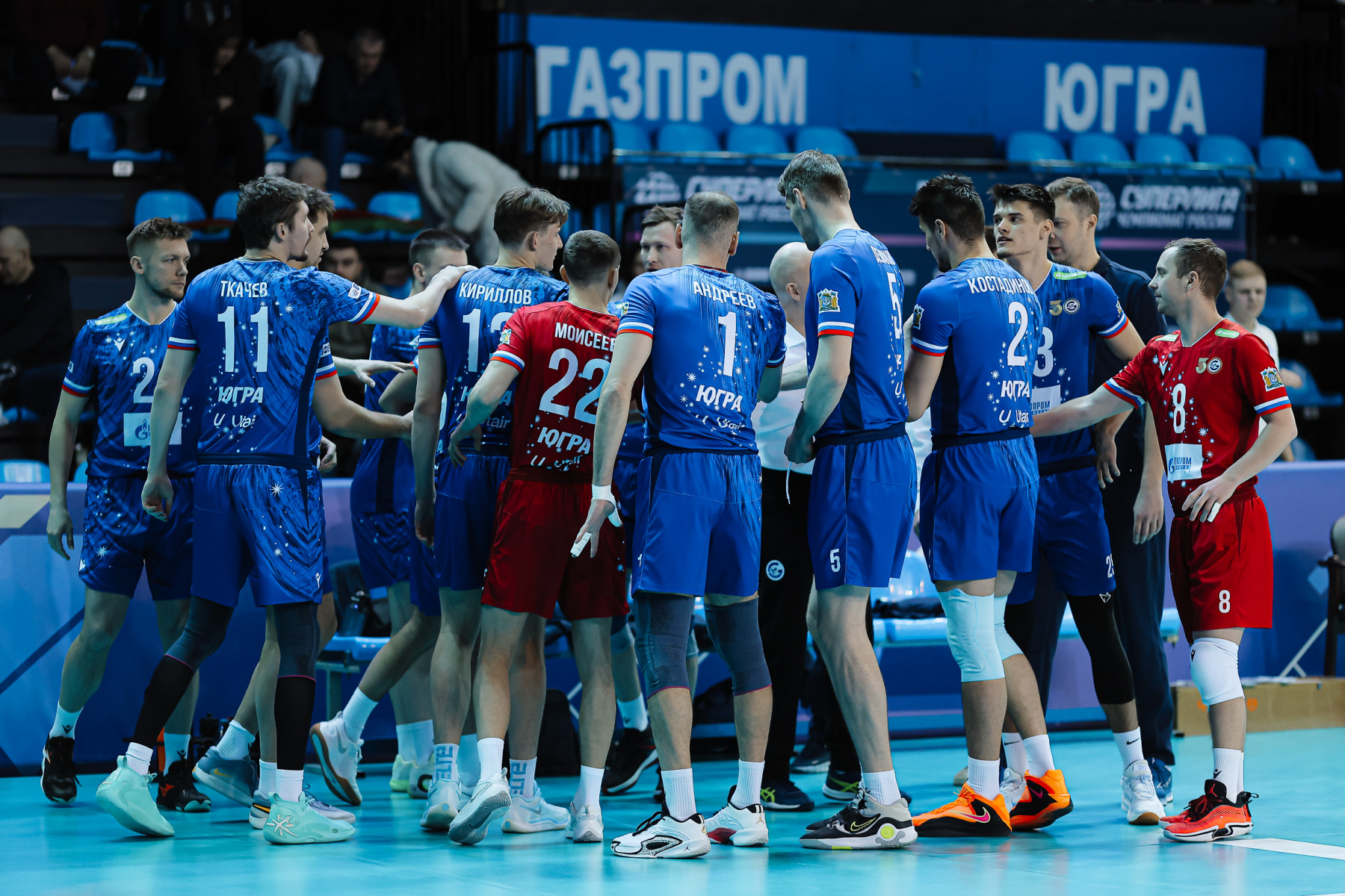 «Газпром-Югра» продолжает бороться с чередой травм. В этот раз в заявке нашлось место Дмитрию Шевлякову и Павлу Куклинскому, tuttavia, скорее это для полноты состава «в квадрате» – они продолжают восстановление, как и Кирилл Никифоров. Наша команда в третий раз в сезоне сыграла по схеме 4-2 – с двумя номинальными связующими Максимом Кирилловым и Слави Костадиновым, которые менялись функциями пасующего и диагонального.