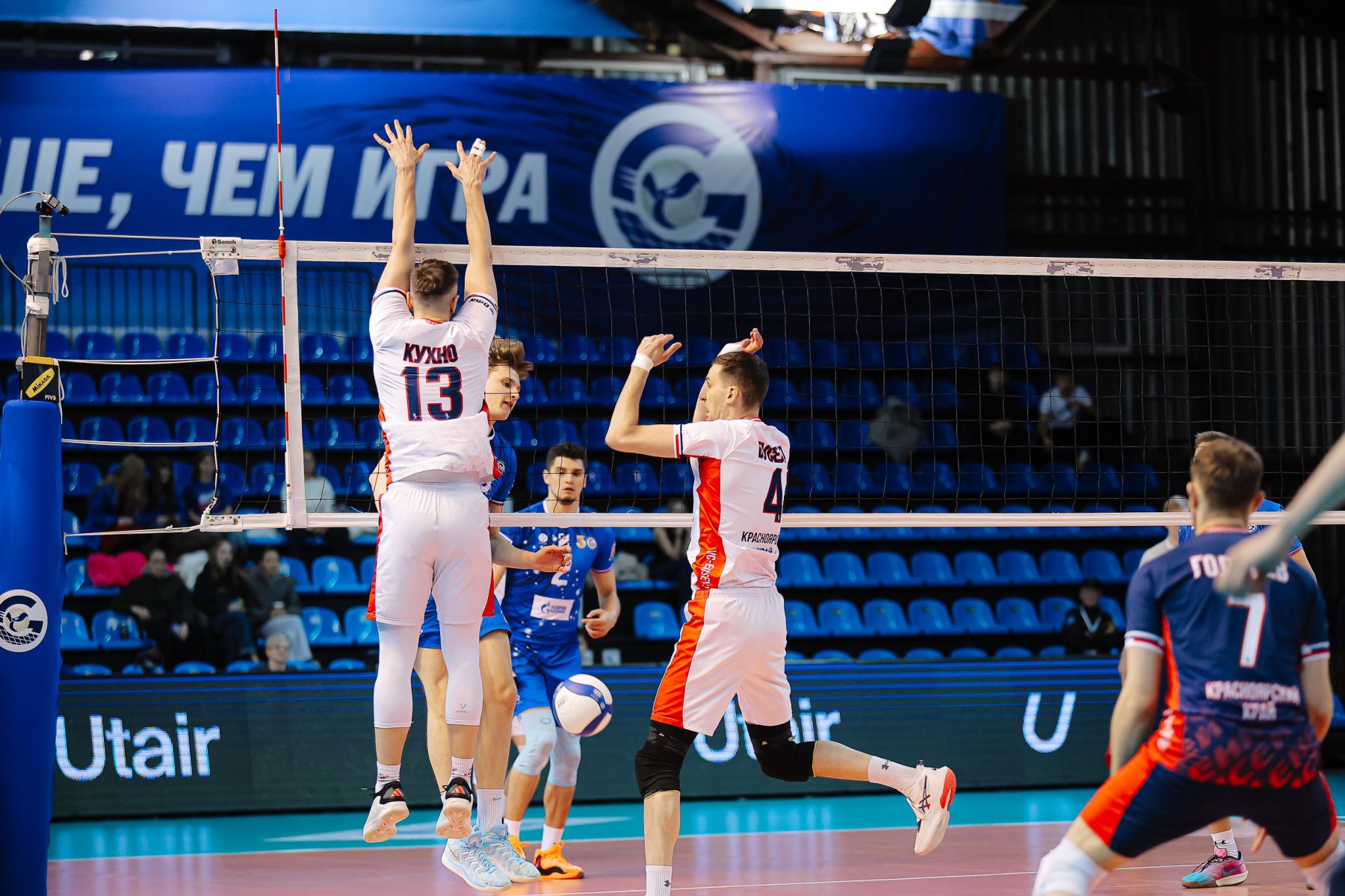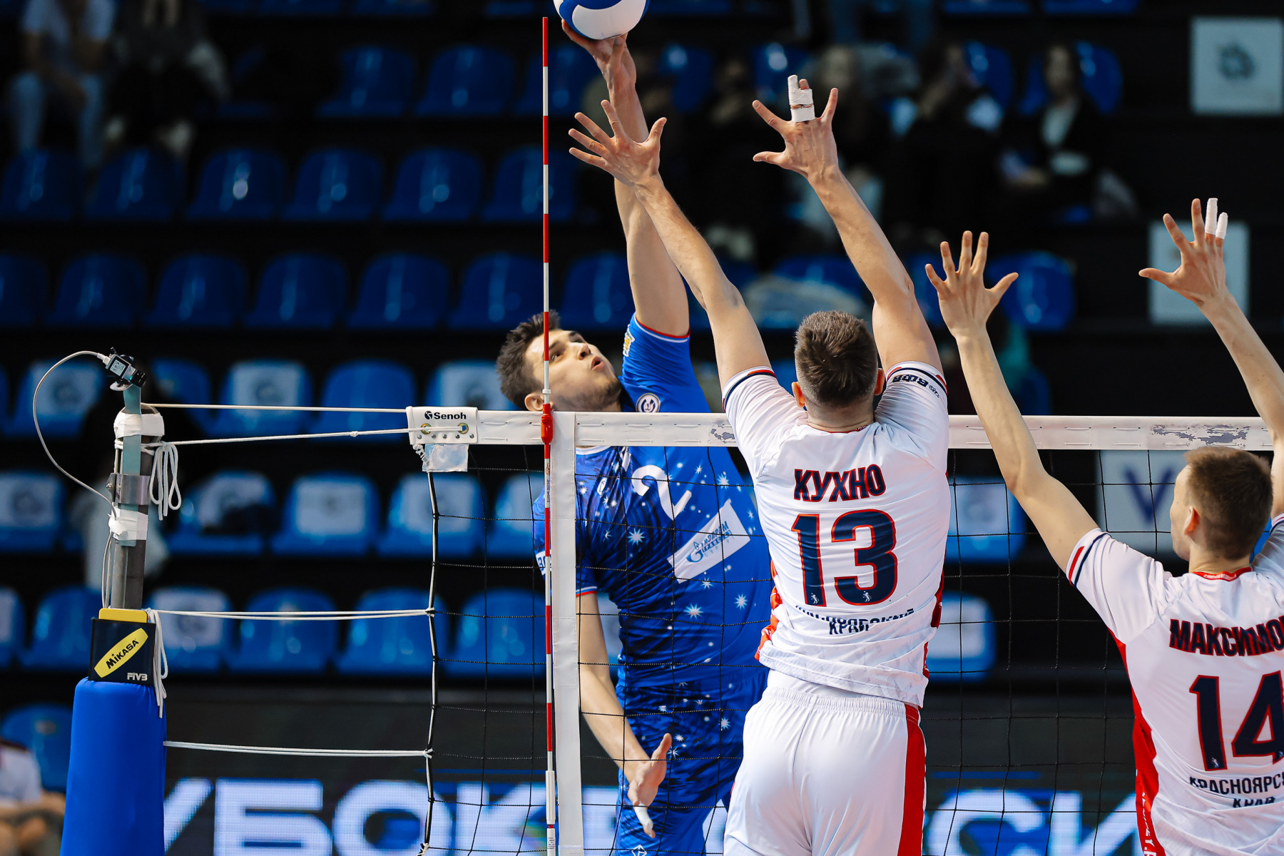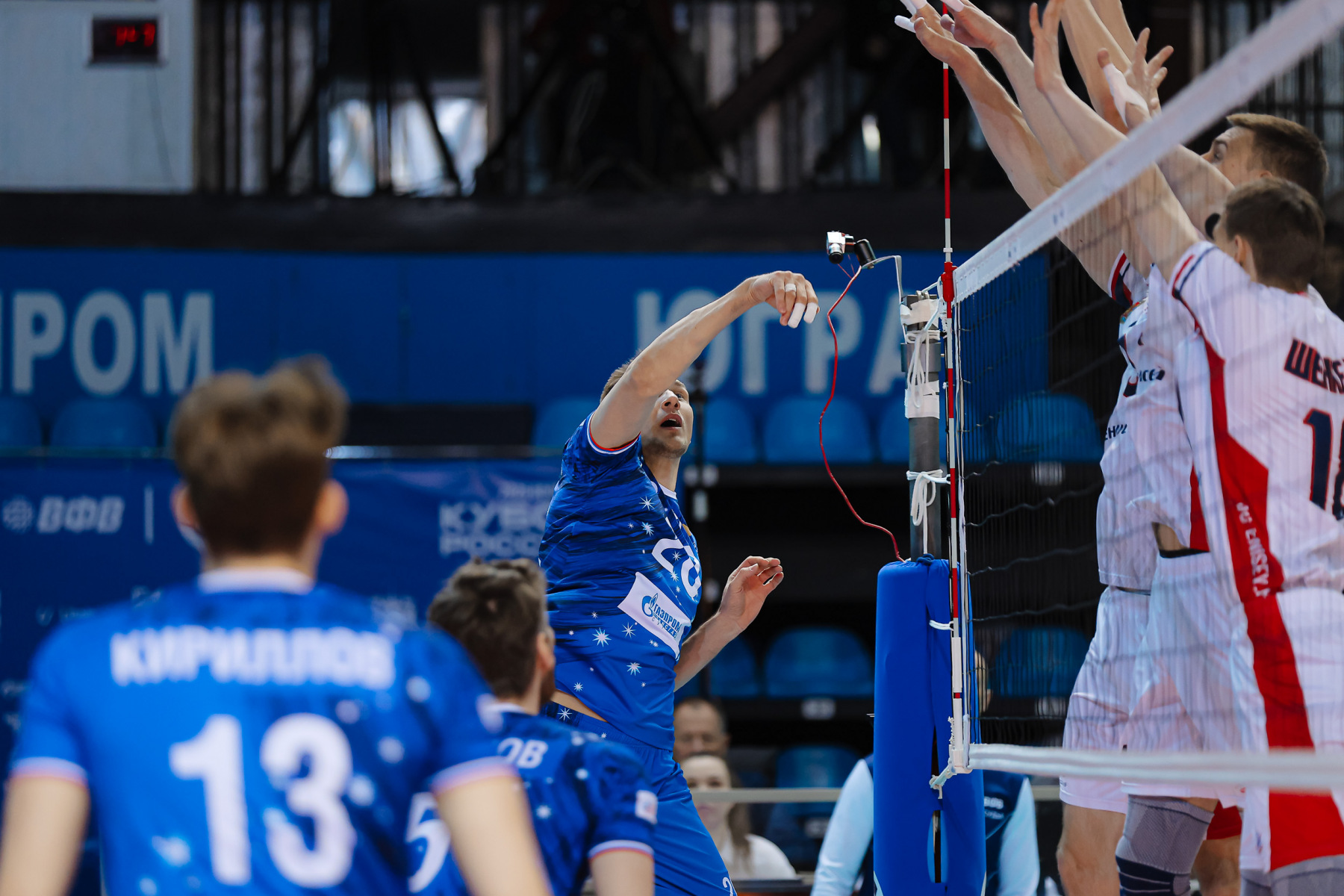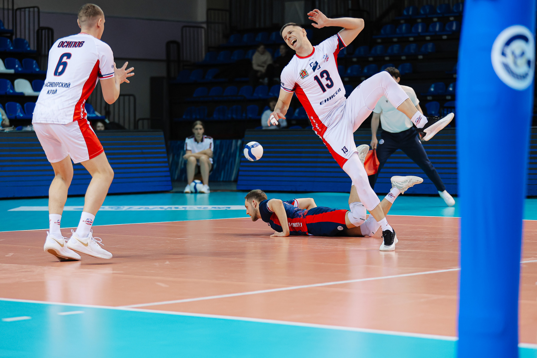 Слави вернулся на площадку еще в концовке второй партии, а Гусамов так и остался в строю до конца матча. Именно его – с переменным успехом – раз за разом искали в приеме подающие «Енисея». Слави отметился в начале третьей партии очередным эйсом, но настоящий бенефис выдал Кириллов, реализовавший на позиции диагонального шесть атак из шести. Коллеги поддержали на сетке: надежны в атаке Панов, Demakov, Слави тоже выглядит неплохо, Гусамов один в один закрывает блоком Фетцова. При обретенной вновь стабильности незамеченной остается активность Осипова в центре сетки, а тут еще Шенкель в очередной раз не справляется с планером Андреева, 13:6. Панов подкараулил скидку Осипова, 21:14.