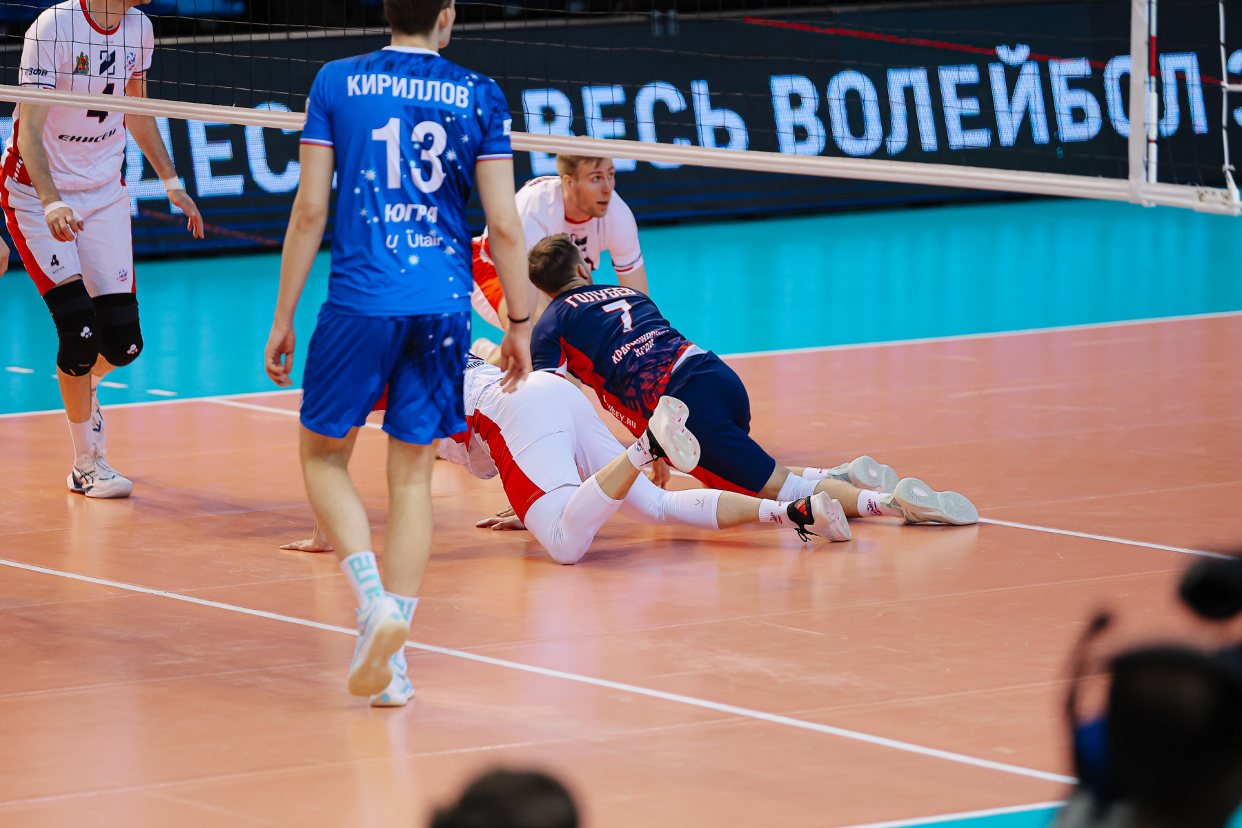 Четвертый сет стал самым напряженным и самым важным: пятый сет сулил «Енисею» хорошие перспективы на ответную домашнюю игру, сургутянам же нужно было добывать трехочковую победу здесь и сейчас. «Енисей» начал серийно ошибаться на подаче, а Осипов ко всему еще и паснул мимо Бусела. Нервозность сквозила и в действиях хозяев: Панов зацепил улетающий в аут планер Бусела, 5:7. tuttavia, Сергей моментально исправился, решив две доигровки на выбивающих подачах Гусамова. А вот с третьей не справился, 8:8 и вновь игра пошла на балансе.