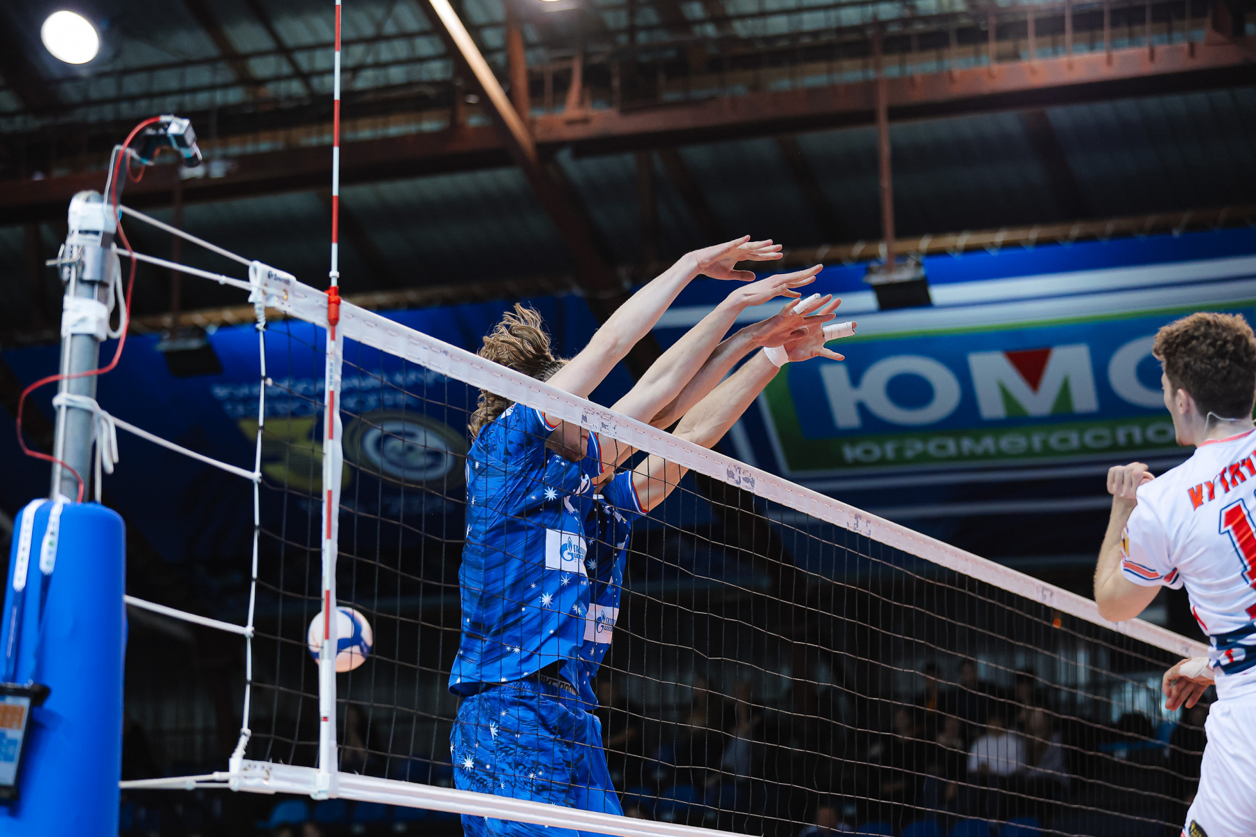 На выбитом приеме после мощной подачи Поторочина Юринский отправляет сложный мяч в аут, 21:22. Соперники идут шаг в шаг до отметки 25:25, после чего Кутлунин забивает очередной пайп, а Костадинов вновь не справляется с блоком, 25:27.