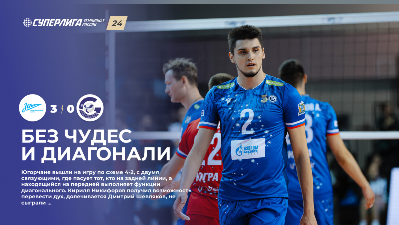 «Зенит» (Санкт-Петербург): Кобзарь – Бабкевич, Дикарев – Косьмин, Янт – Динейкин, Гребенников «Газпром-Югра» (Сургут): С.Костадинов – Кириллов, Андреев – Ткачев, Родичев – А.Костадинов, Нагаец Югорчане вышли на игру по схеме 4-2, с двумя связующими, где пасует тот, кто на задней линии, а находящийся на передней выполняет функции диагонального. Кирилл Никифоров получил возможность перевести дух, долечивается Читать дальше »